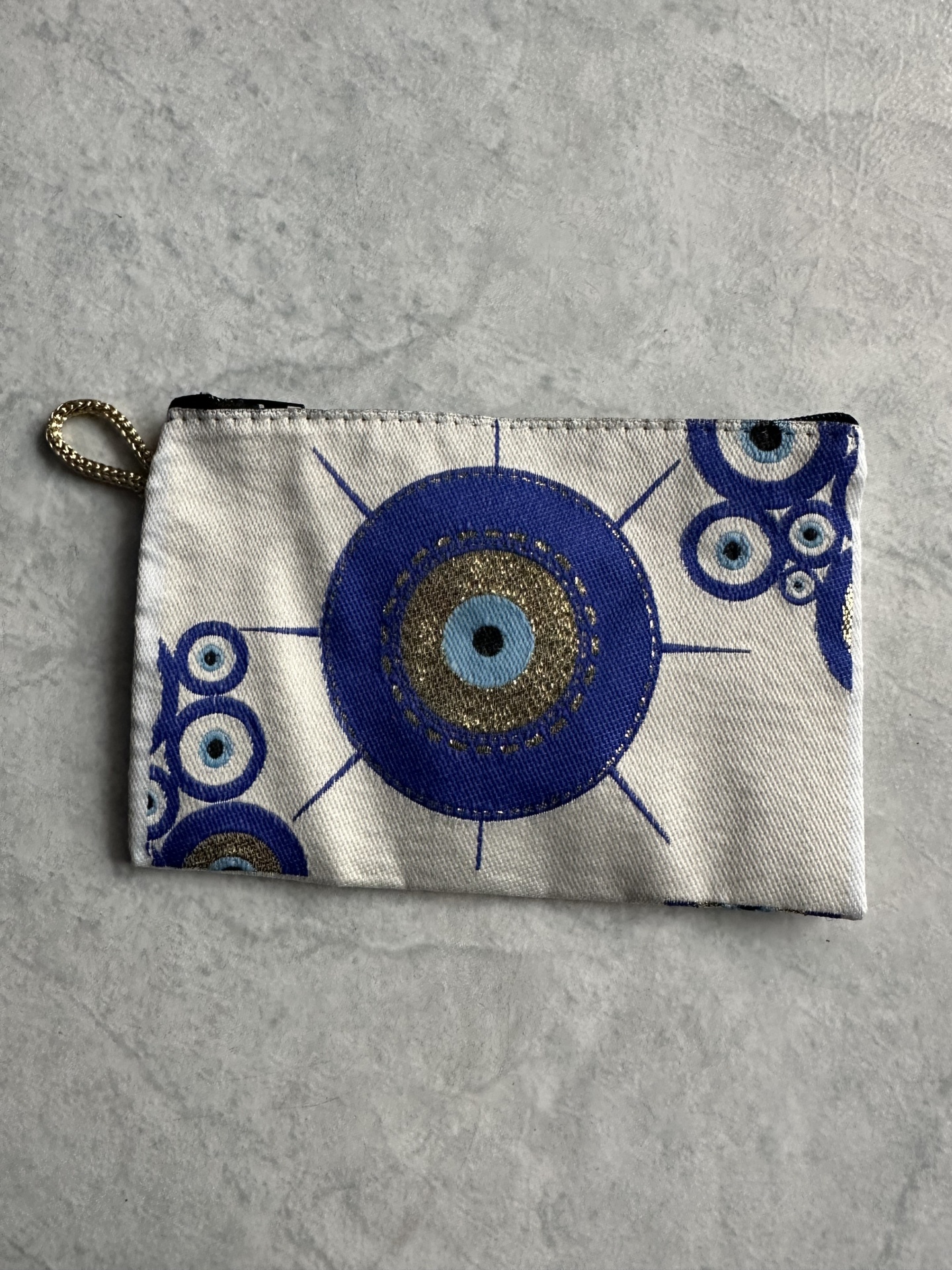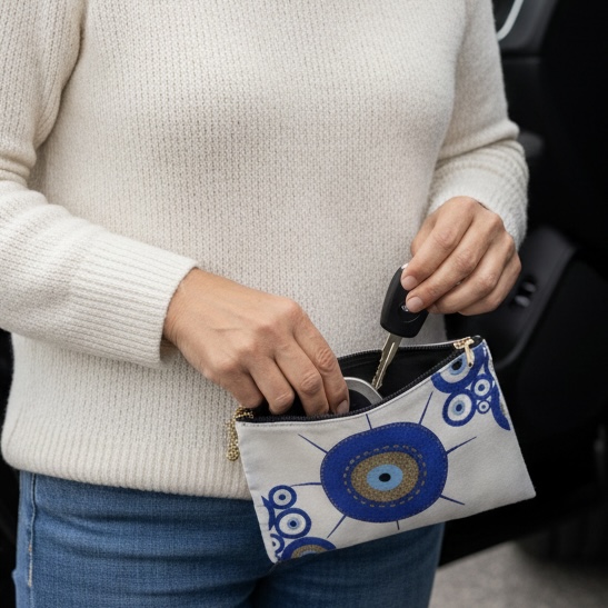 Leve a proteção consigo para todo o lado com esta bolsinha de 15 cm por 10 cm. Com um design vibrante de olho turco, é o acessório útil que faltava para organizar as suas joias ou moedas com um toque de misticismo único.