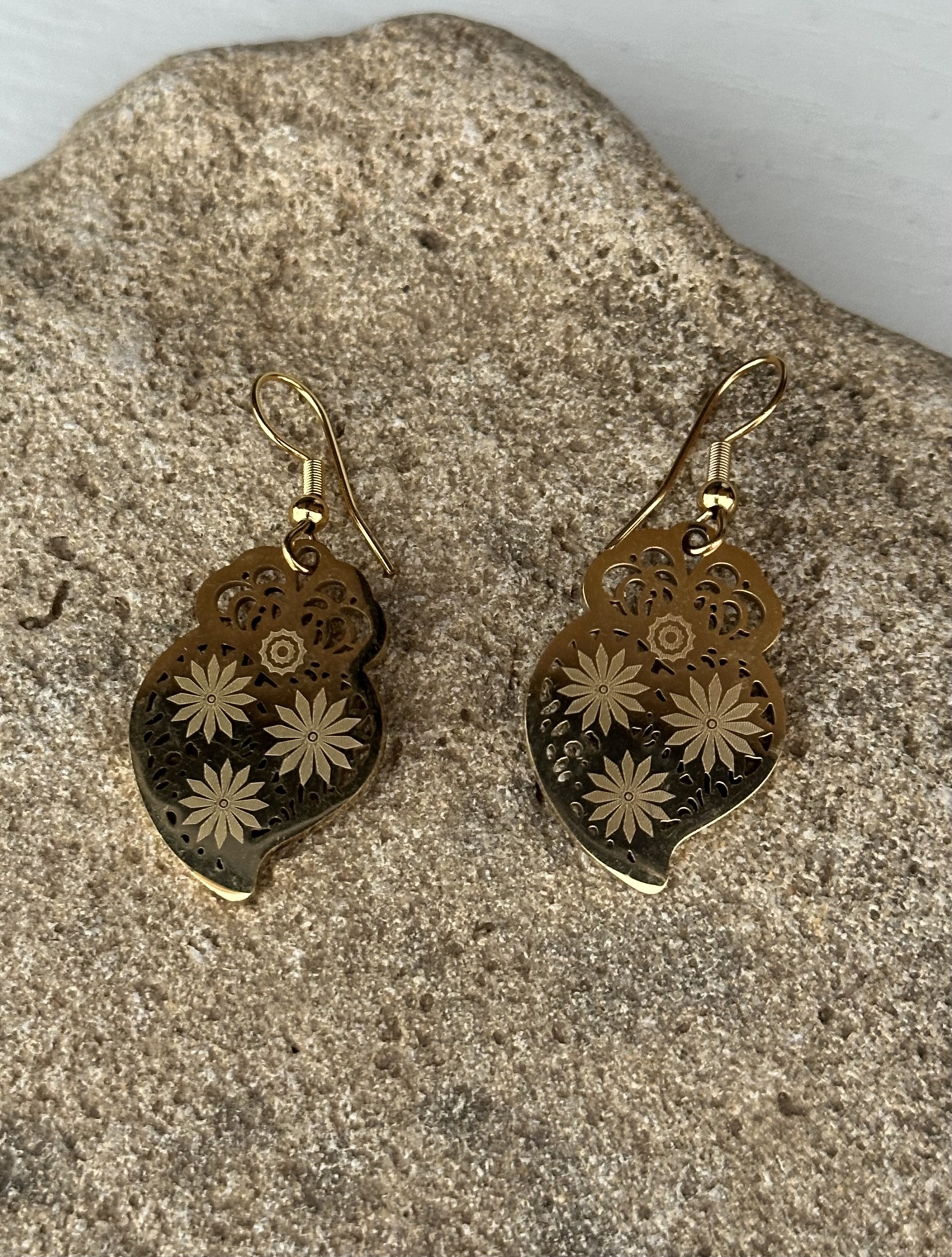 Com 2,5 cm de pura sofisticação, estes brincos apresentam recortes artísticos e pequenos desenhos de flores que conferem um toque romântico e feminino ao acessório. O fecho de encaixe garante segurança e conforto durante o uso, tornando-os perfeitos para qualquer ocasião.