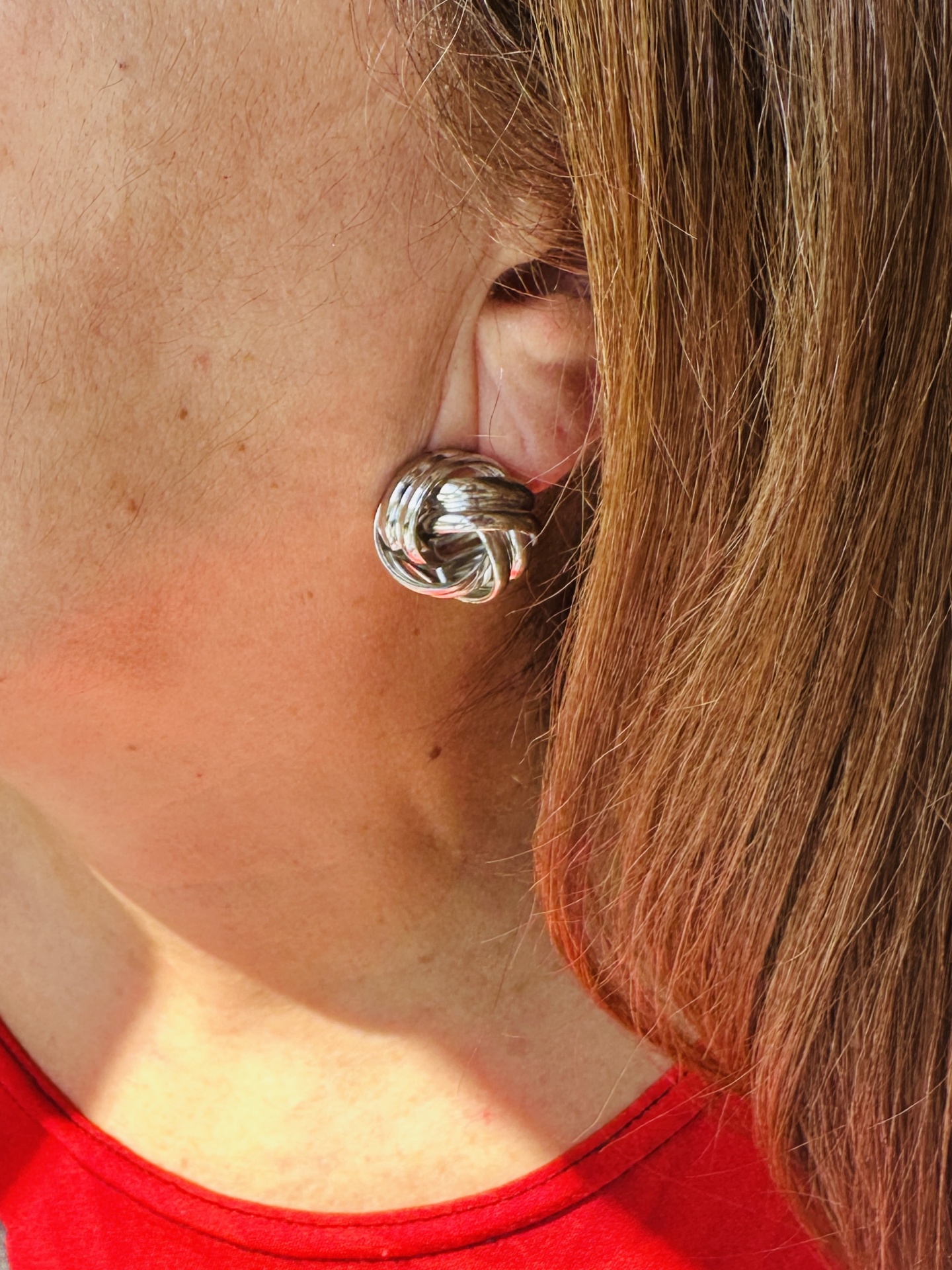 Os brincos de nó com 2 cm de diâmetro são um modelo maravilhoso para compor visuais elegantes.