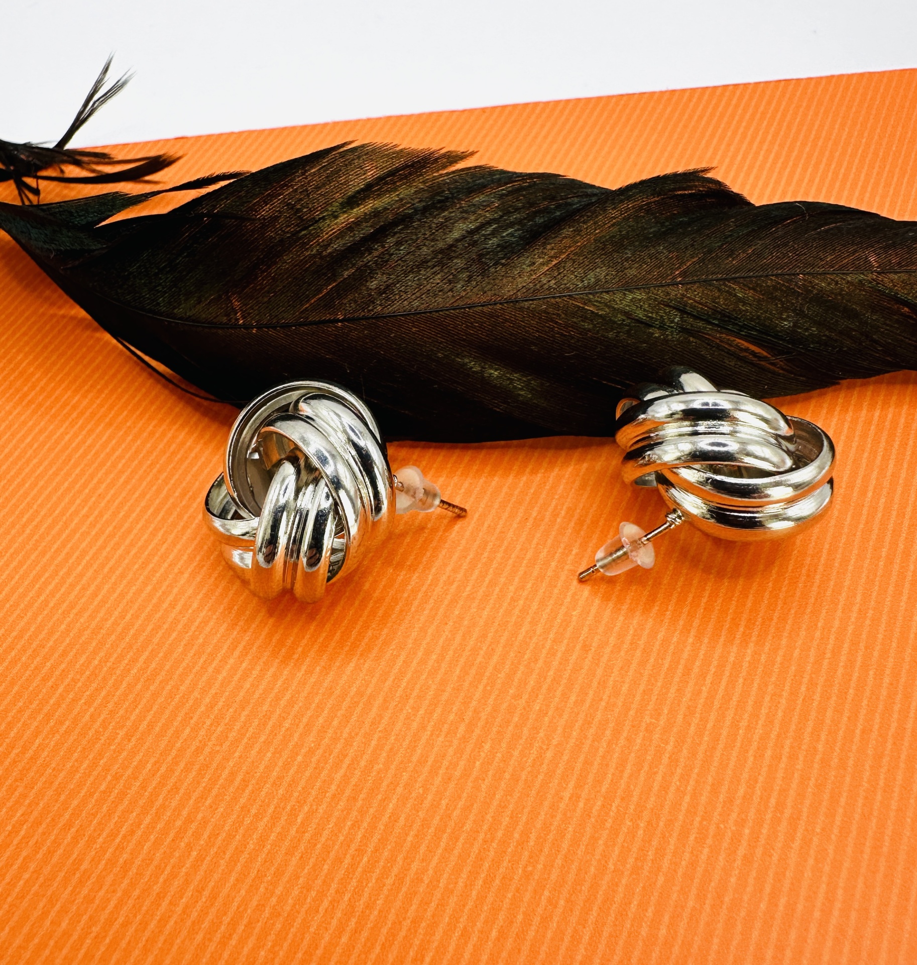 Brincos de nó em aço prateados