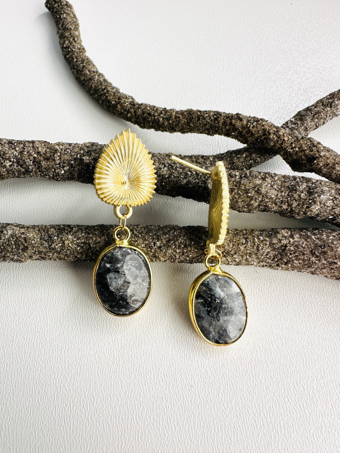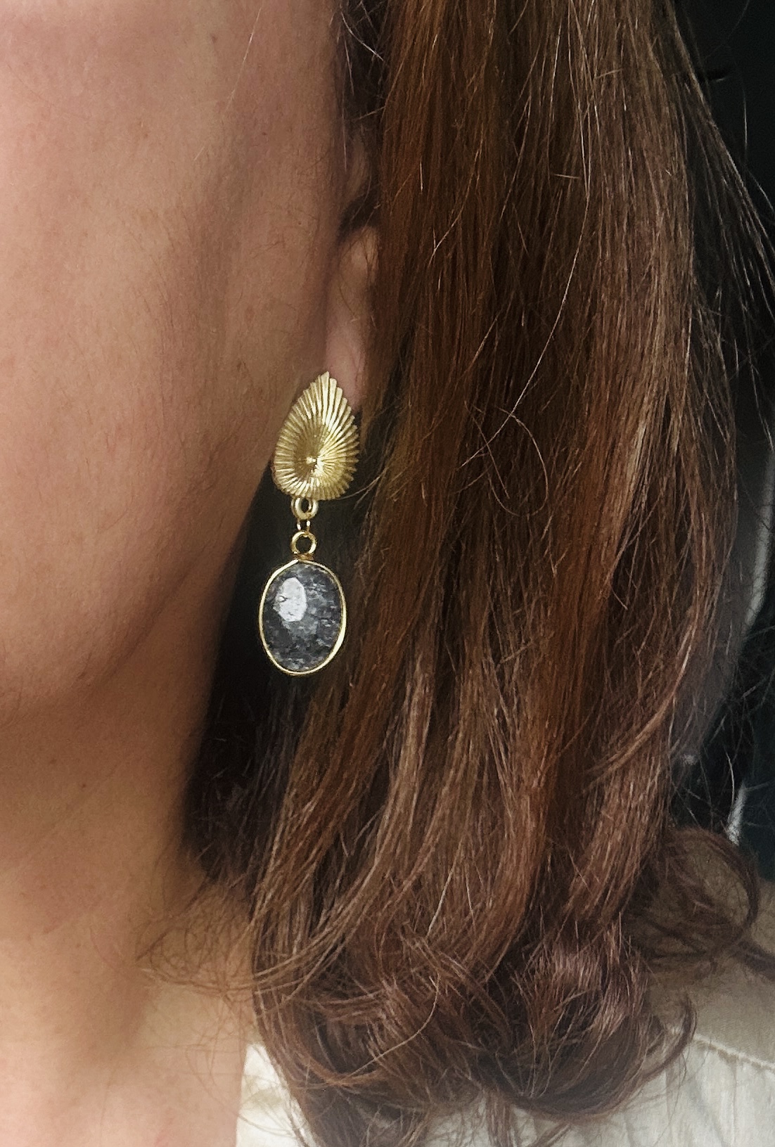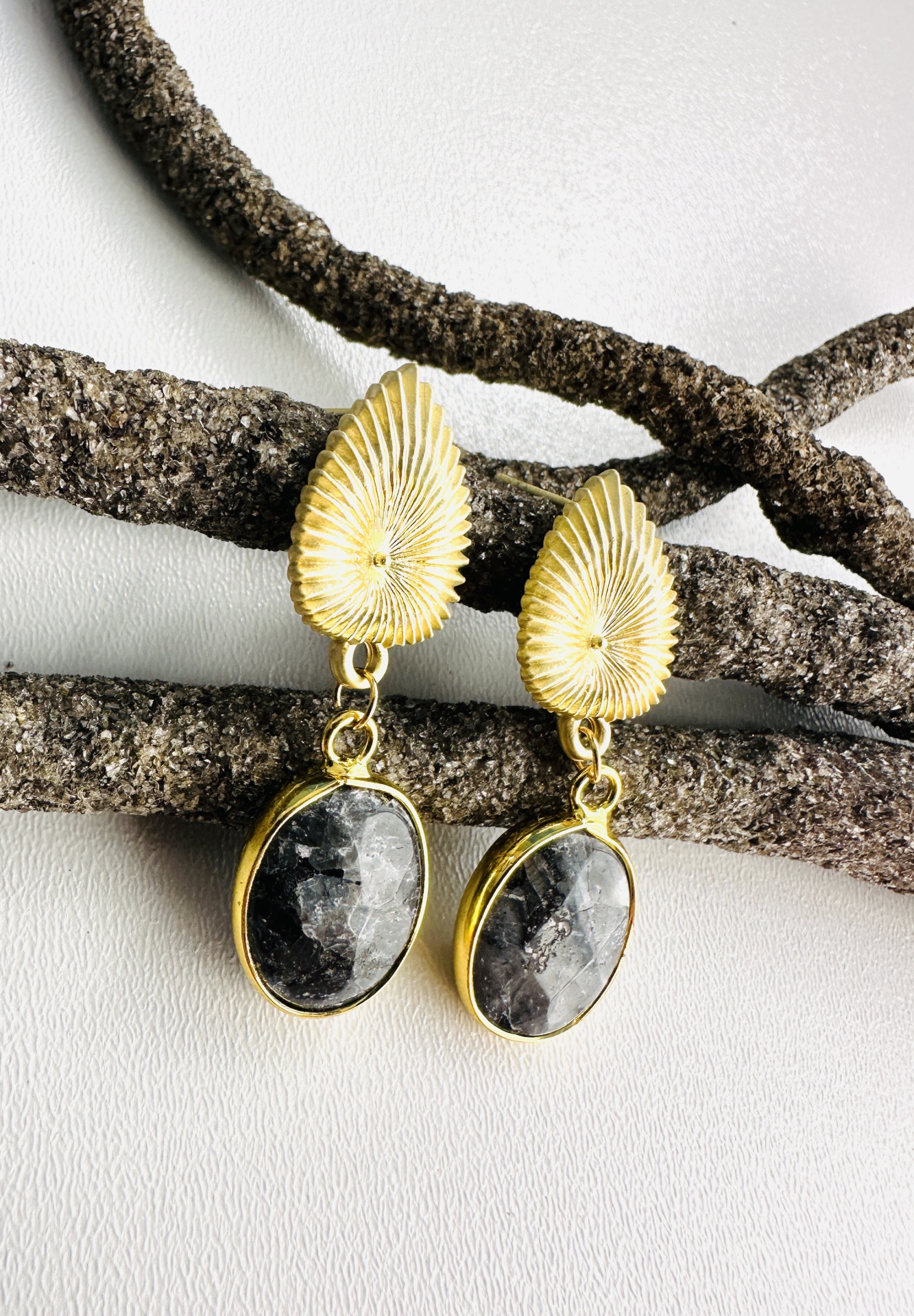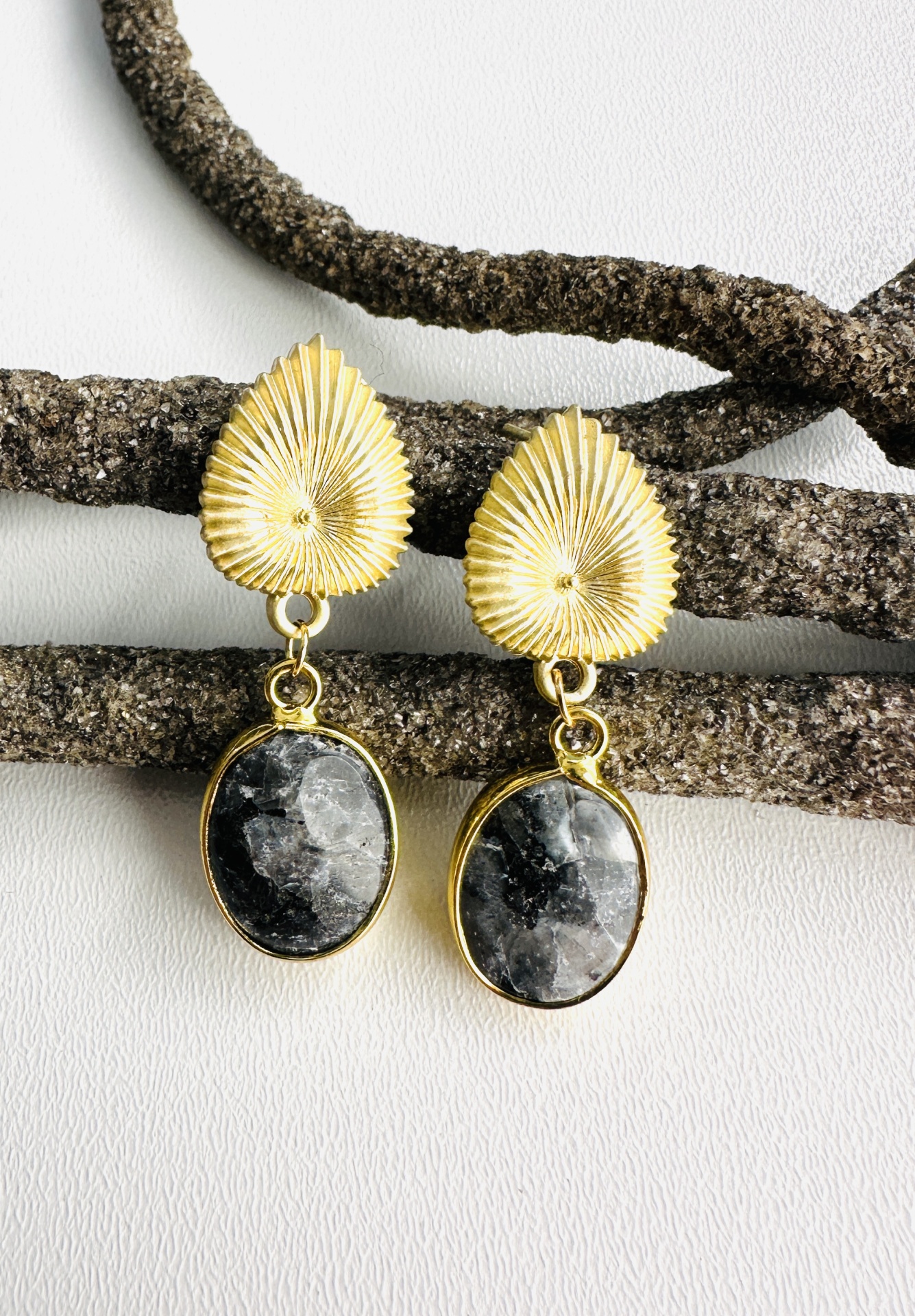 Brincos de pedra natural ágata cinza