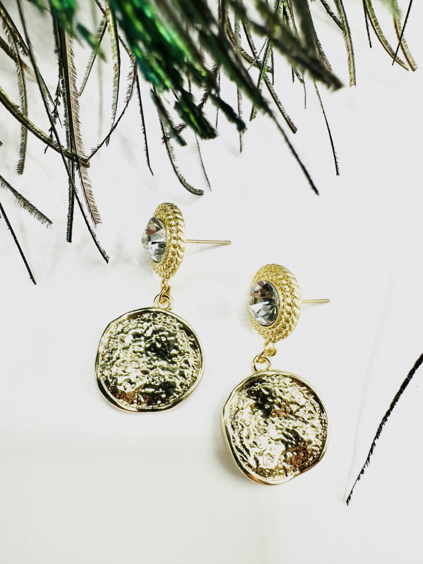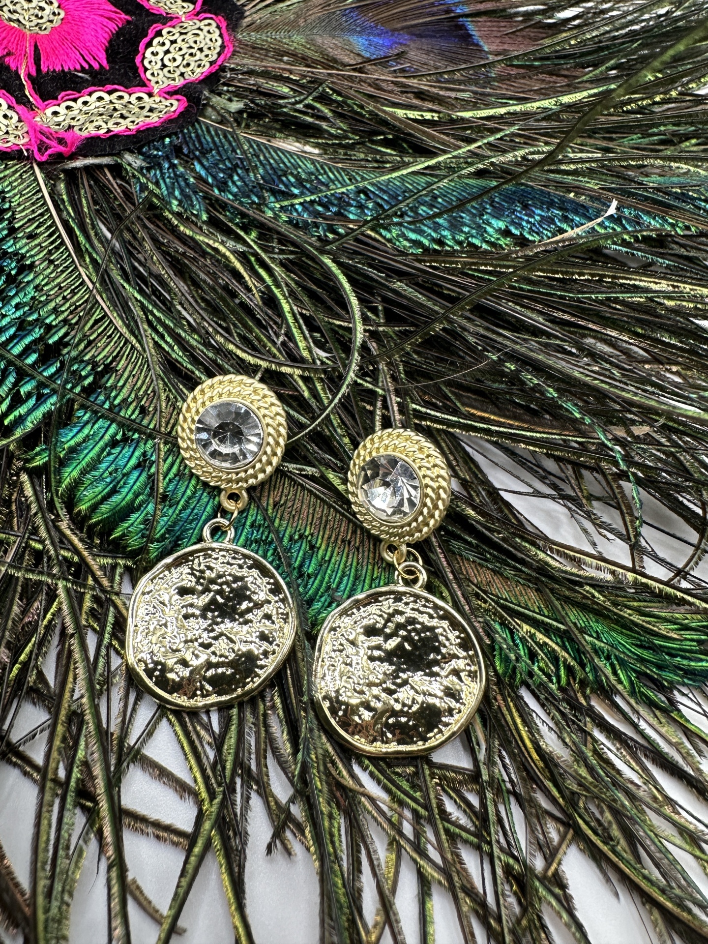 Eleve o seu estilo com os nossos brincos dourados de 4 centímetros com pêndulo martelado redondo. Estes brincos são a escolha perfeita para quem procura uma peça única que combine elegância e um toque de charme artesanal.