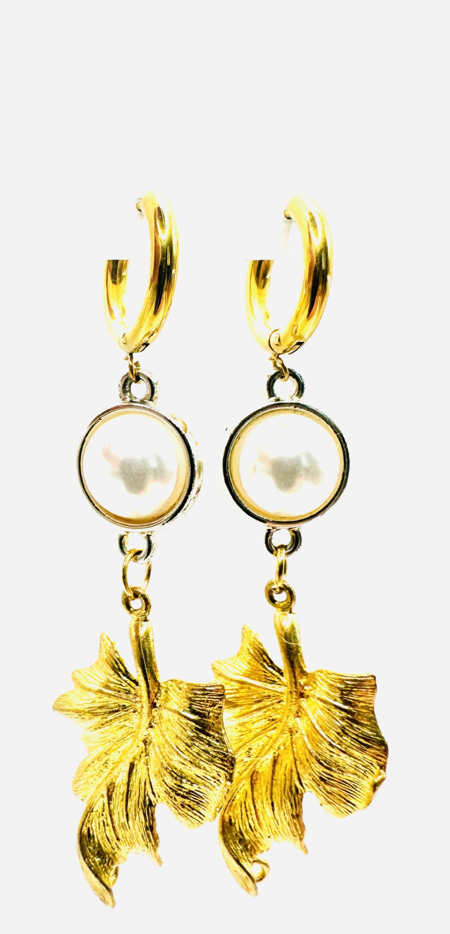Descubra a elegância intemporal com estes delicados brincos de pérola e folha dourada com 7 centímetros. Com uma base em aço dourado, cada brinco possui uma pérola central, que exala sofisticação, e um pendente em forma de folha detalhadamente trabalhada, que acrescenta um toque natural e refinado. Estes brincos são ideais para quem procura um acessório versátil e elegante, que pode ser usado tanto em ocasiões formais quanto no dia a dia para adicionar um brilho extra ao seu visual.