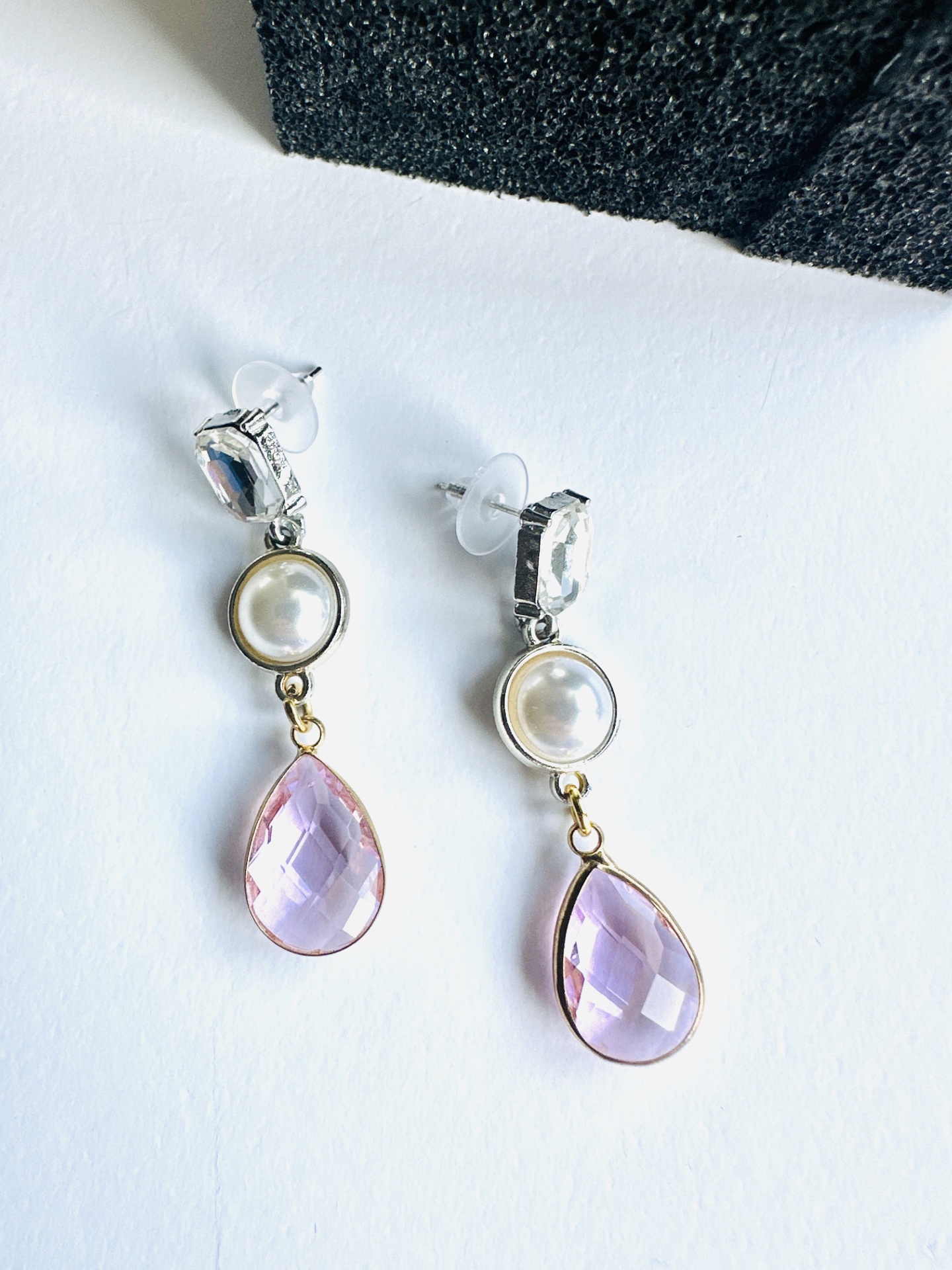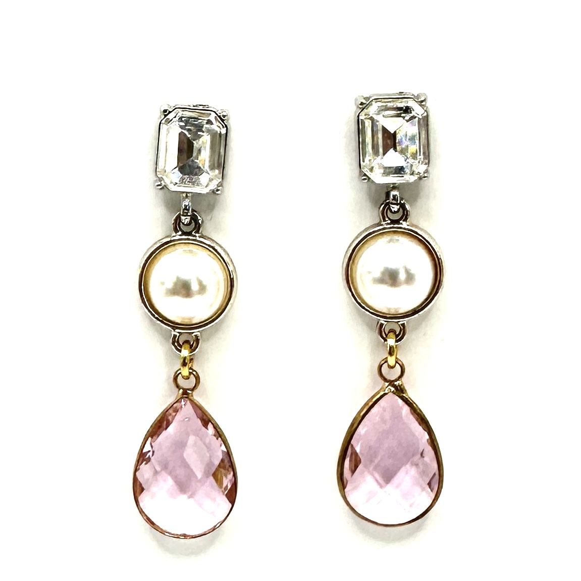 Brincos Elegantes com Cristal, Pérola e Gota Rosa
