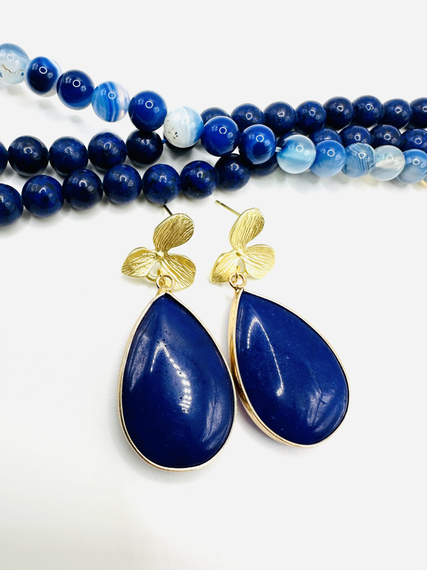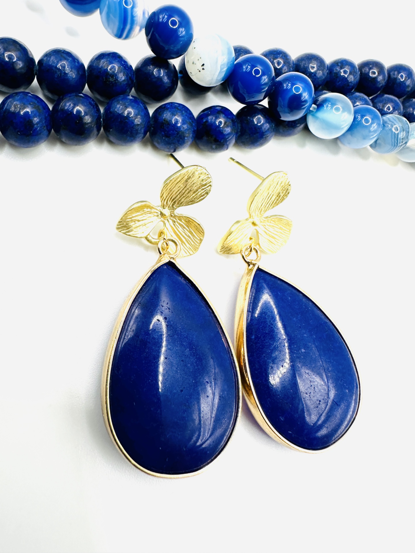 Pedra azul em lápis lazúli de alta qualidade, com acabamento impecável e brilho intenso.