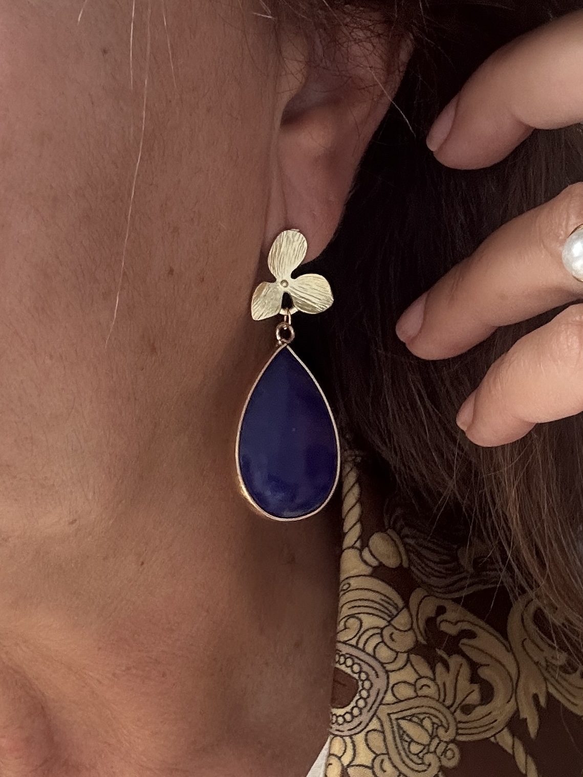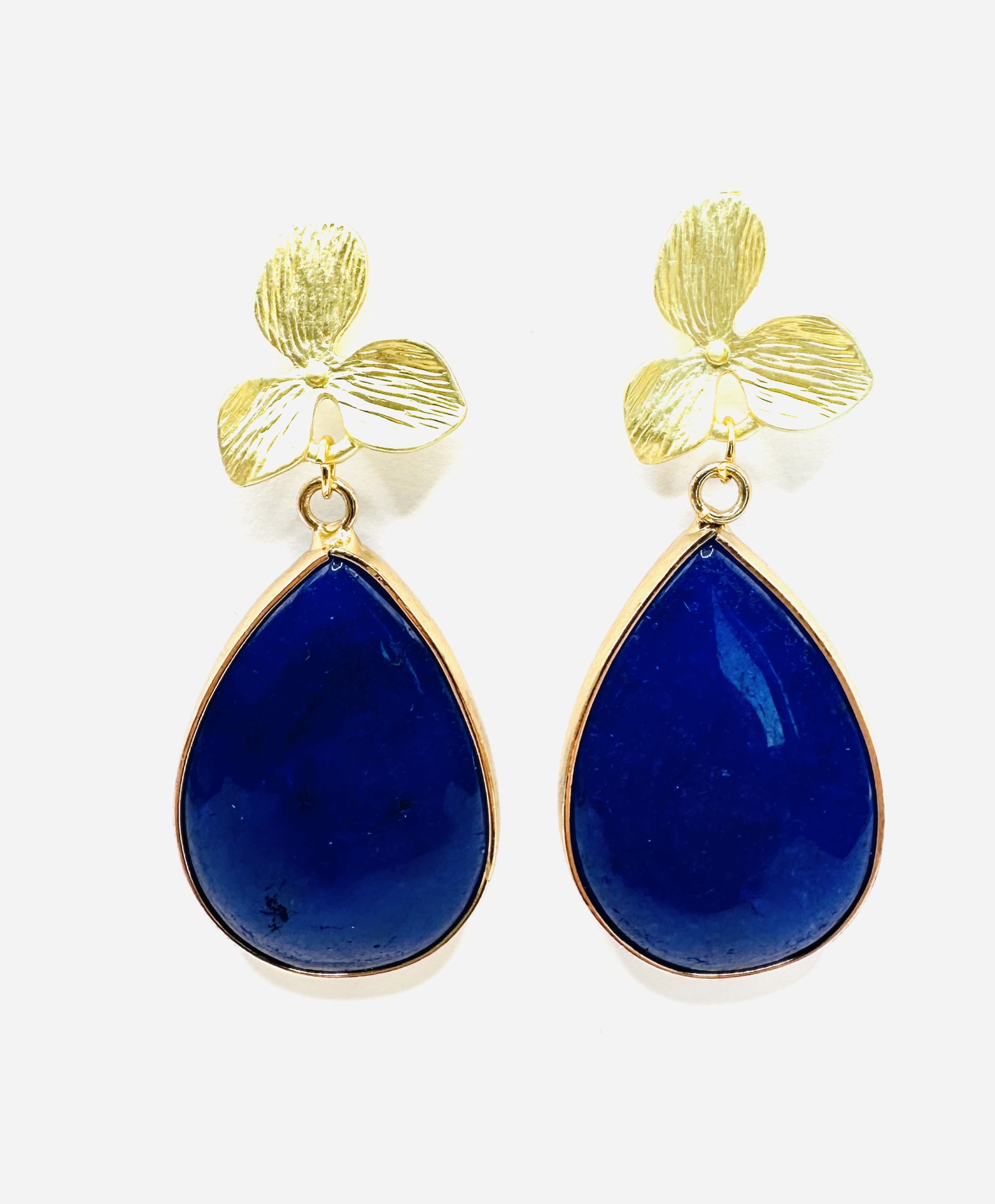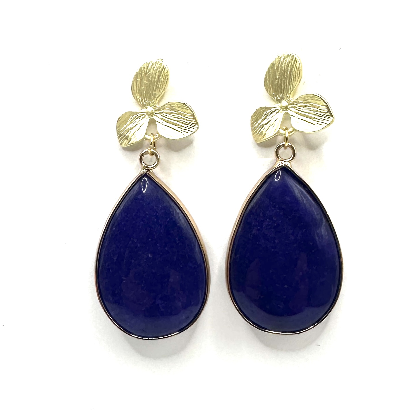 Brincos flor dourada e lápis lazuli