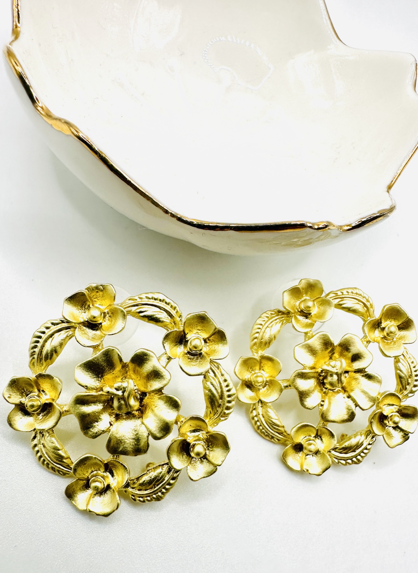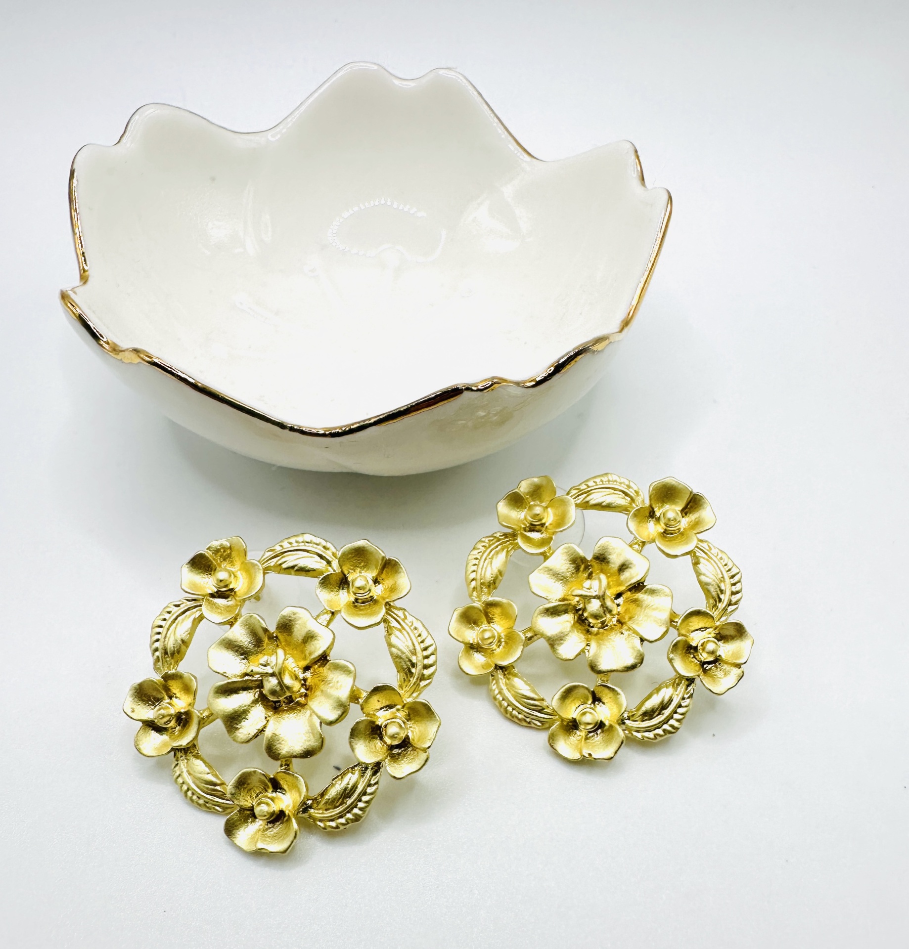 Armazenamento: Guarde os brincos numa caixa de joias forrada ou num saquinho de tecido para evitar arranhões e proteger o banho dourado.