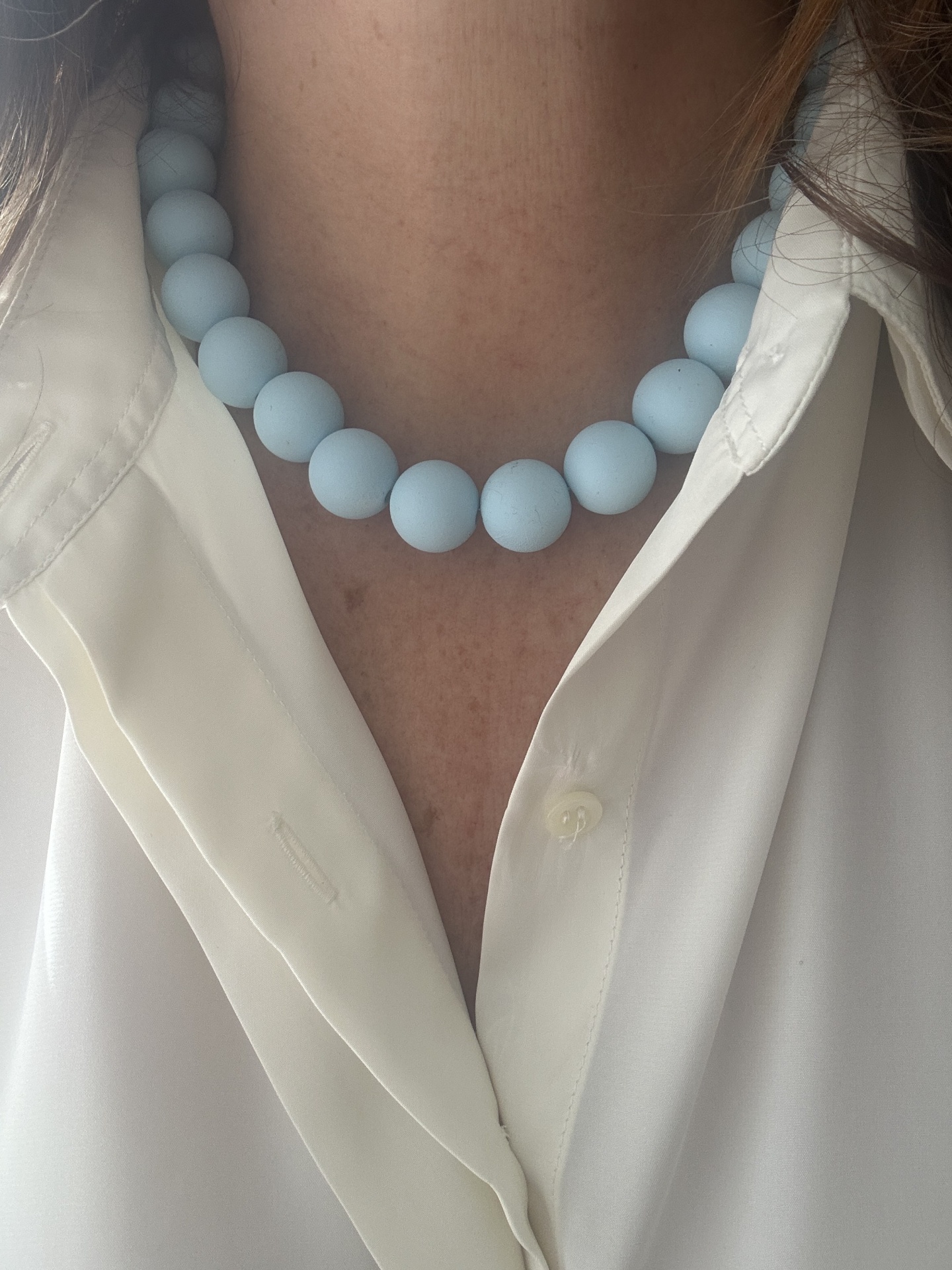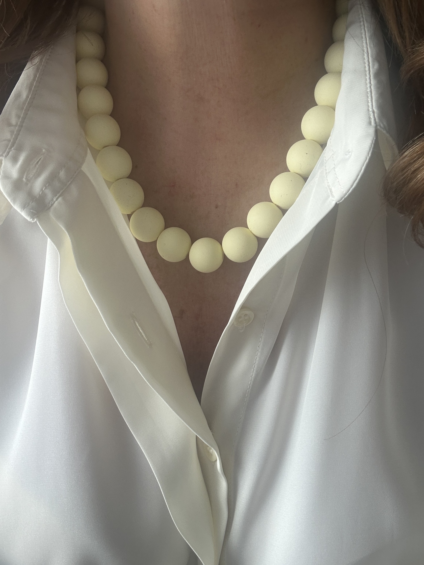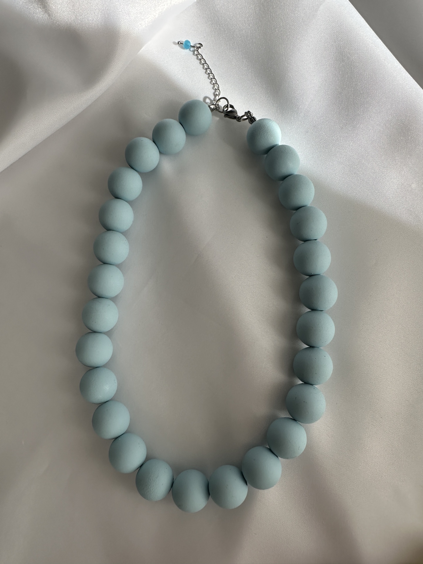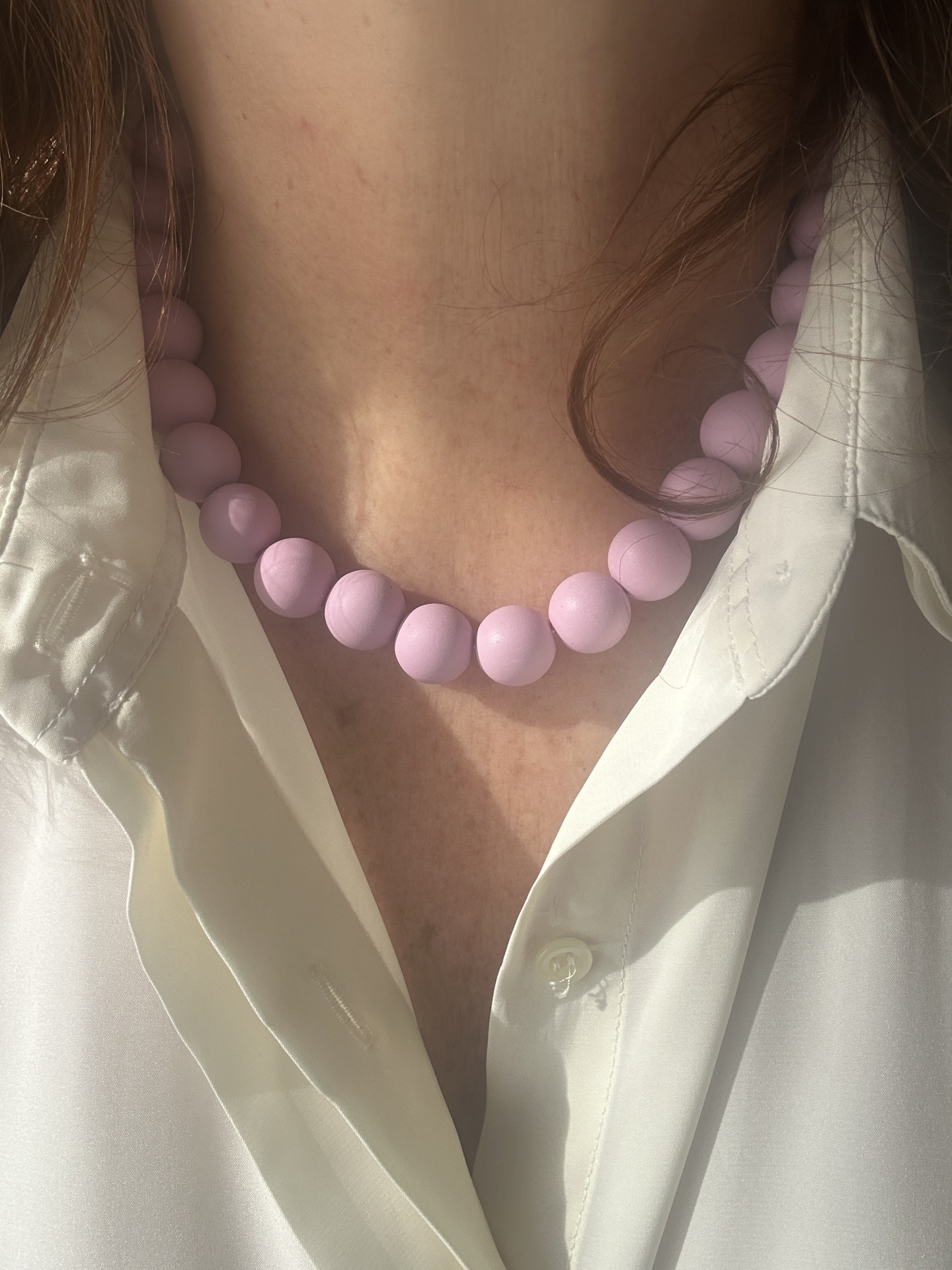 Reinvente o seu estilo com este colar, onde o design clássico das esferas encontra uma tonalidade pastel moderna e envolvente.