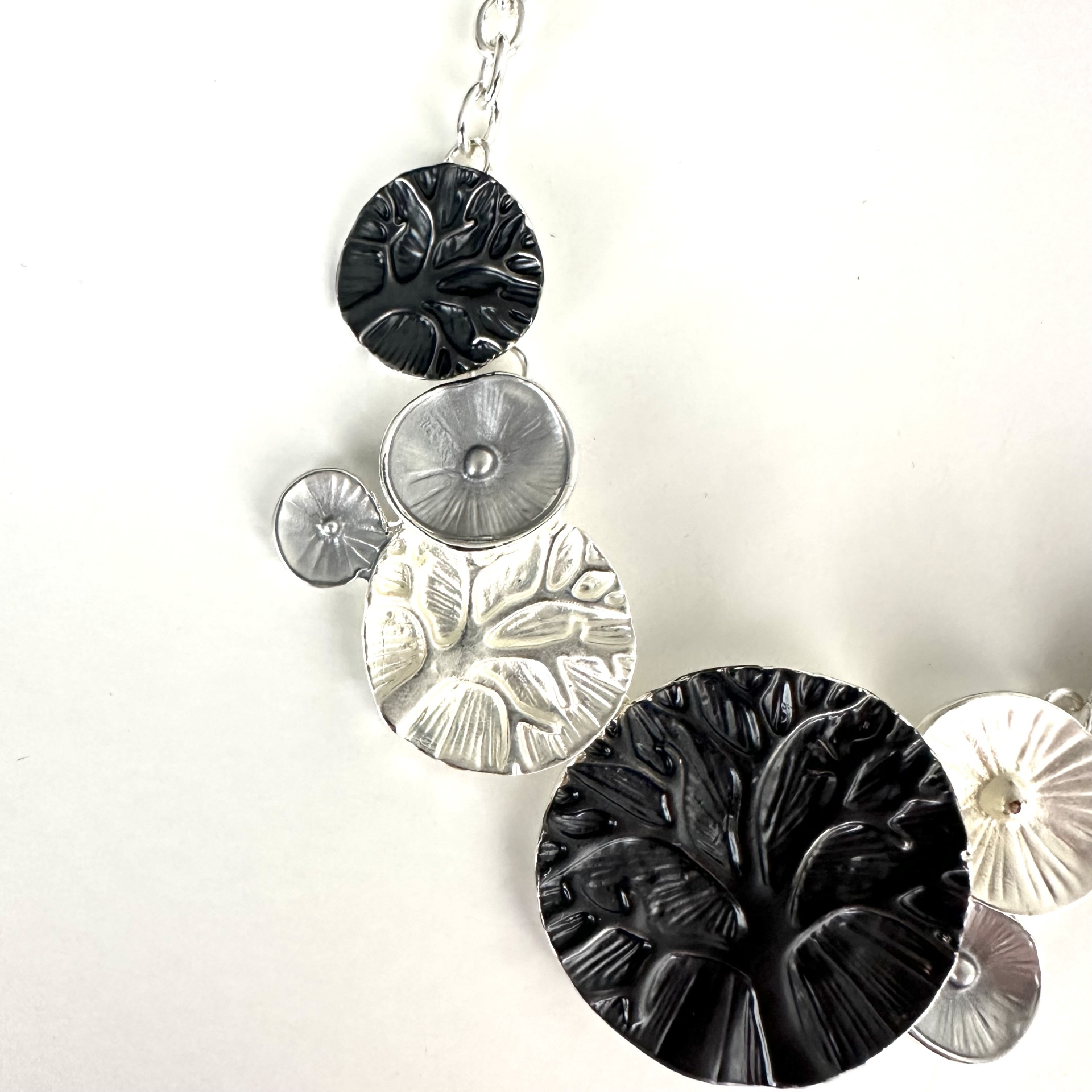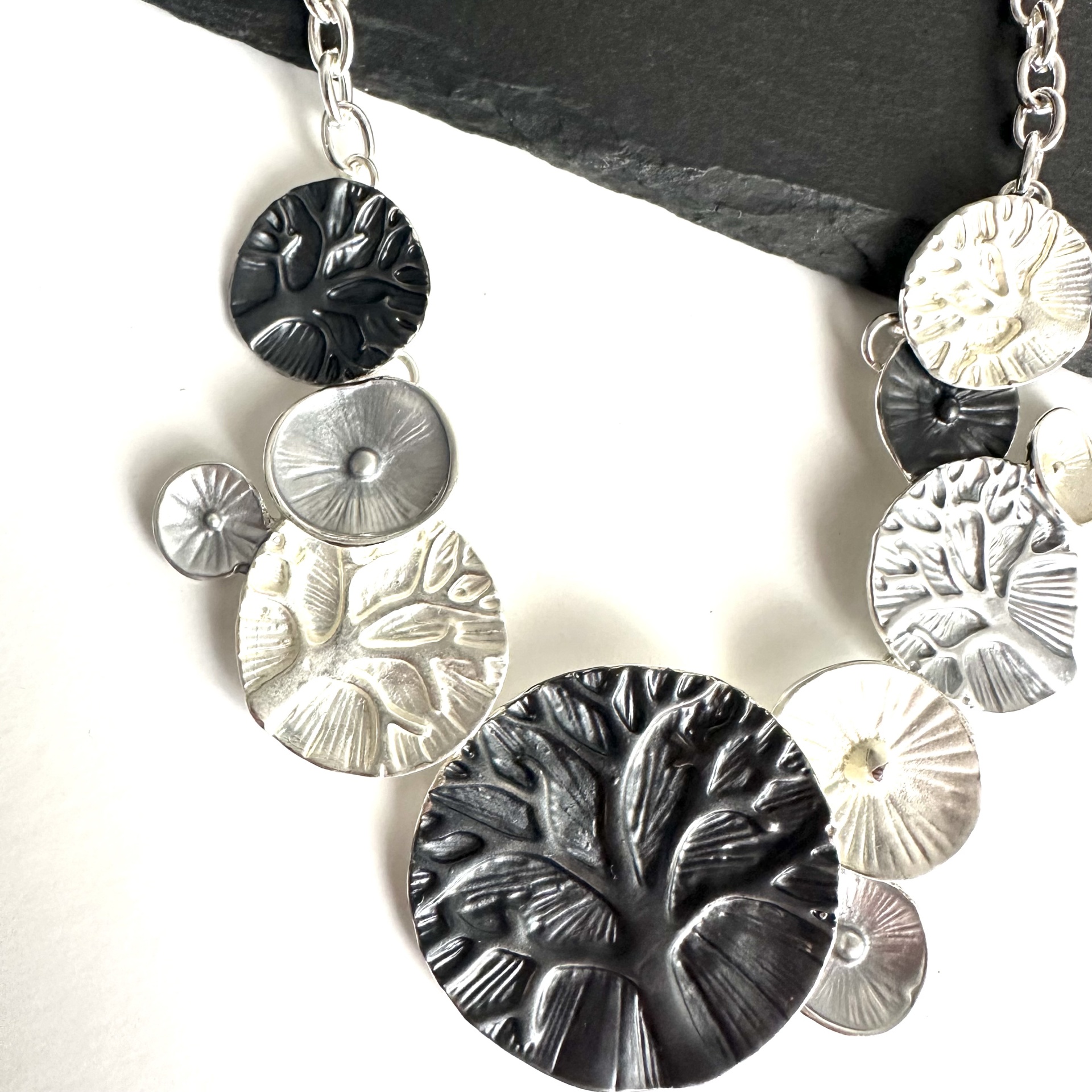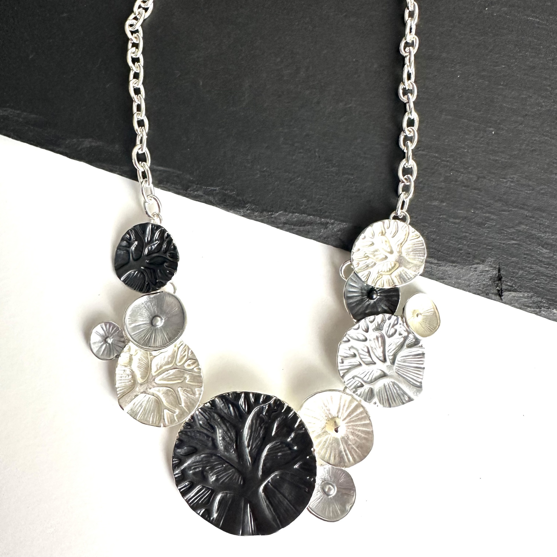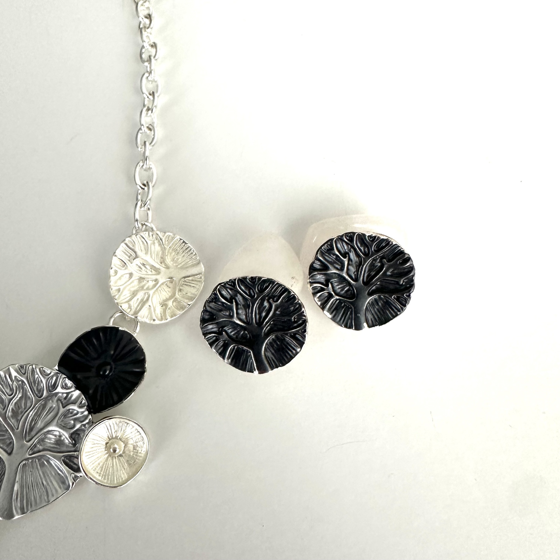 Este colar com 40 cm e extensor de 4 cm é uma peça ultraespecífica que une a elegância do prateado ao contraste moderno dos tons pretos, destacando o poderoso símbolo da Árvore da Vida. Com diversos pendentes detalhados que representam o crescimento e a conexão, este acessório útil é a escolha perfeita para quem procura uma joia com significado e estilo único.