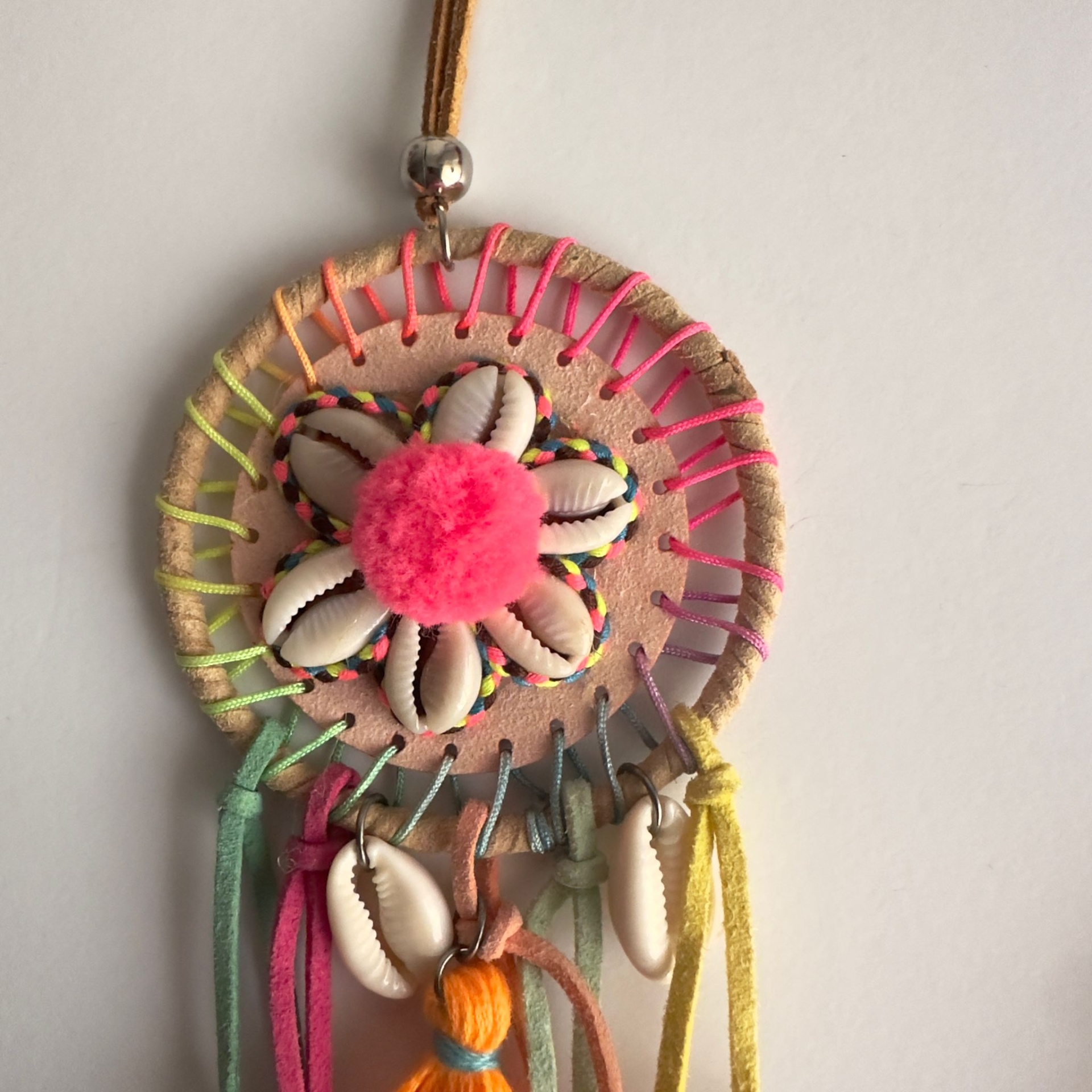 Adicione um toque de estilo boho e significado ao seu visual com o nosso colar ajustável em cabedal castanho, decorado com um encantador caçador de sonhos, conchas naturais e pequenos tassels coloridos. Esta peça única combina beleza, tradição e versatilidade, perfeita para quem aprecia acessórios com personalidade.