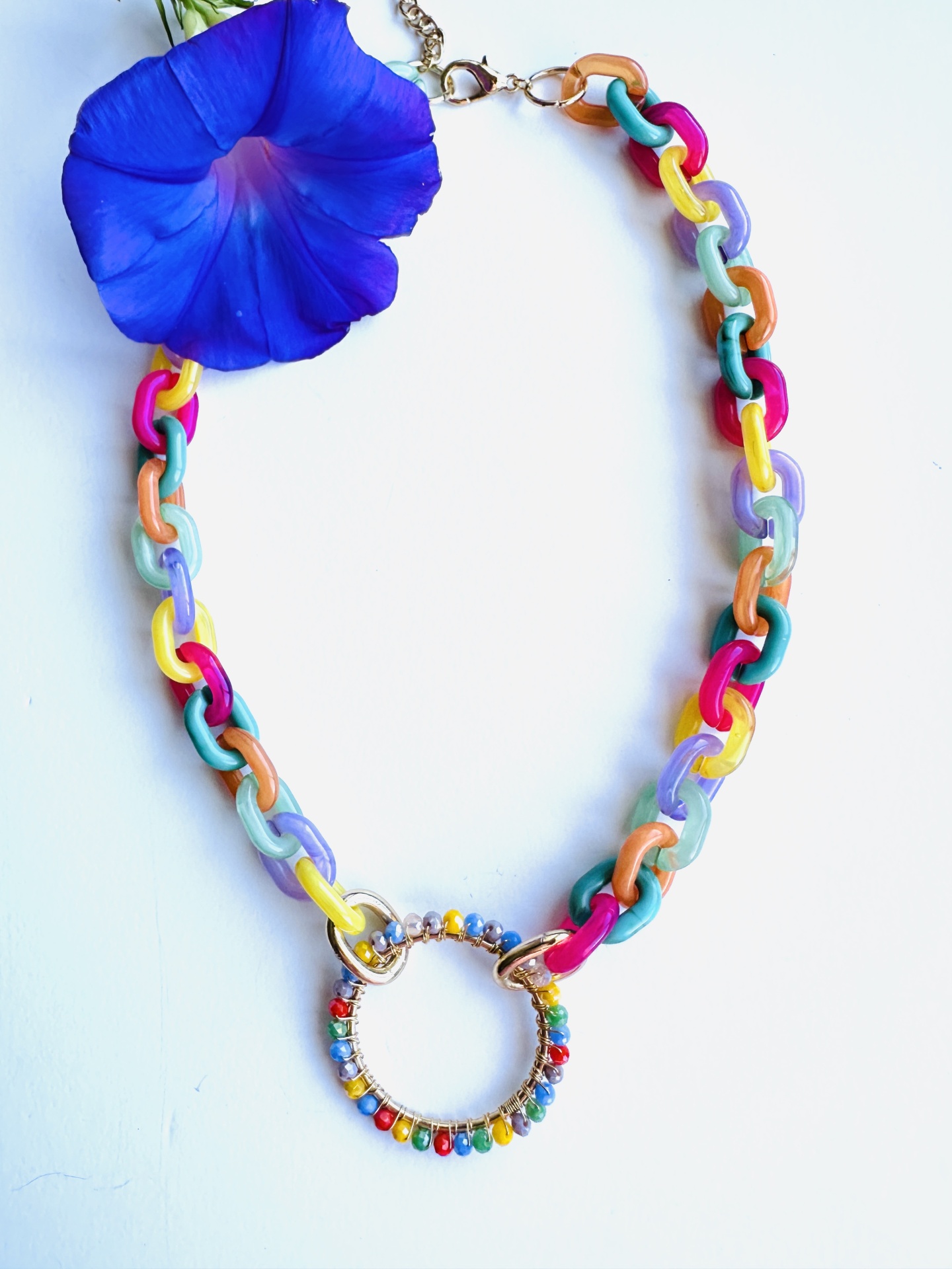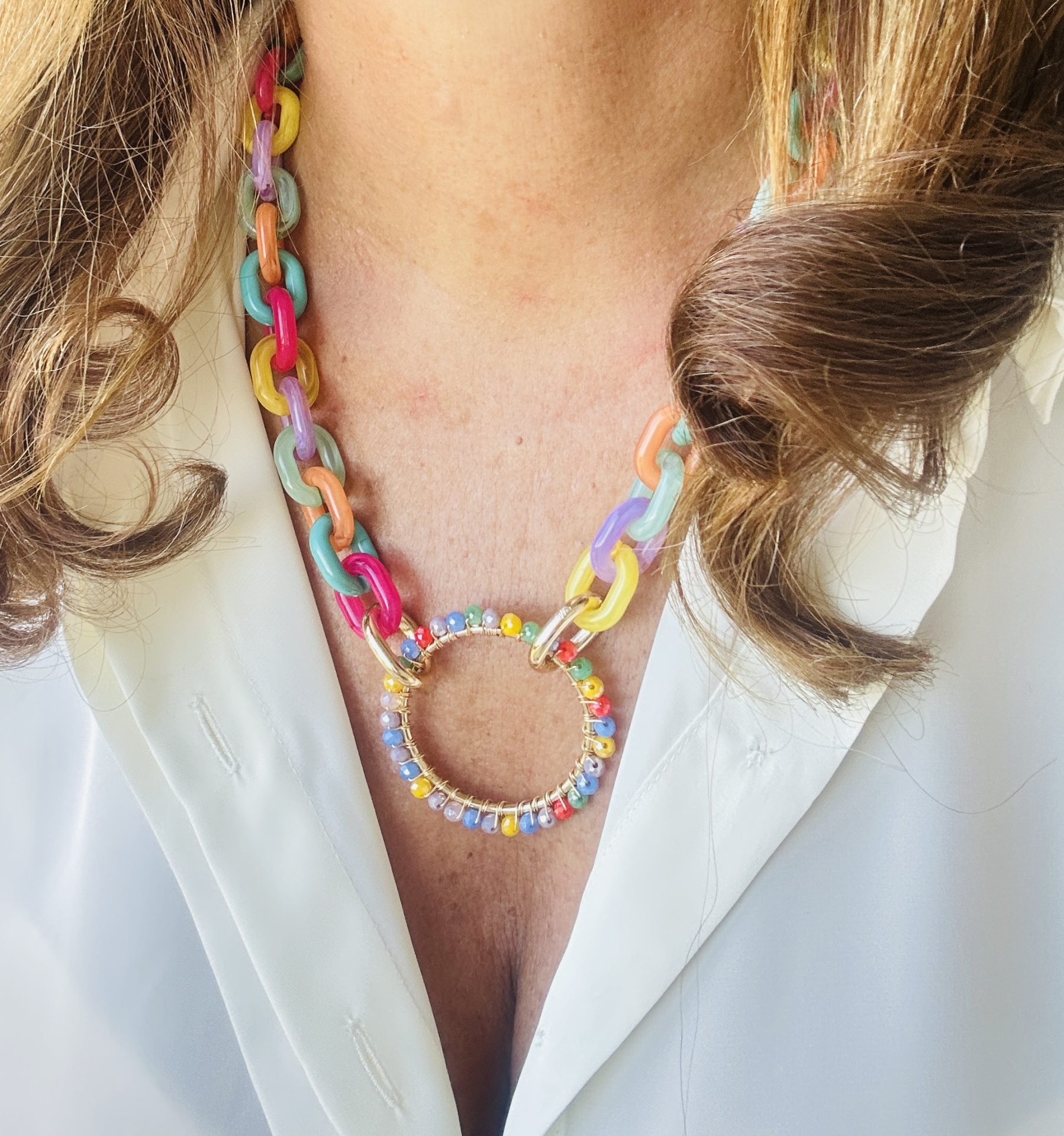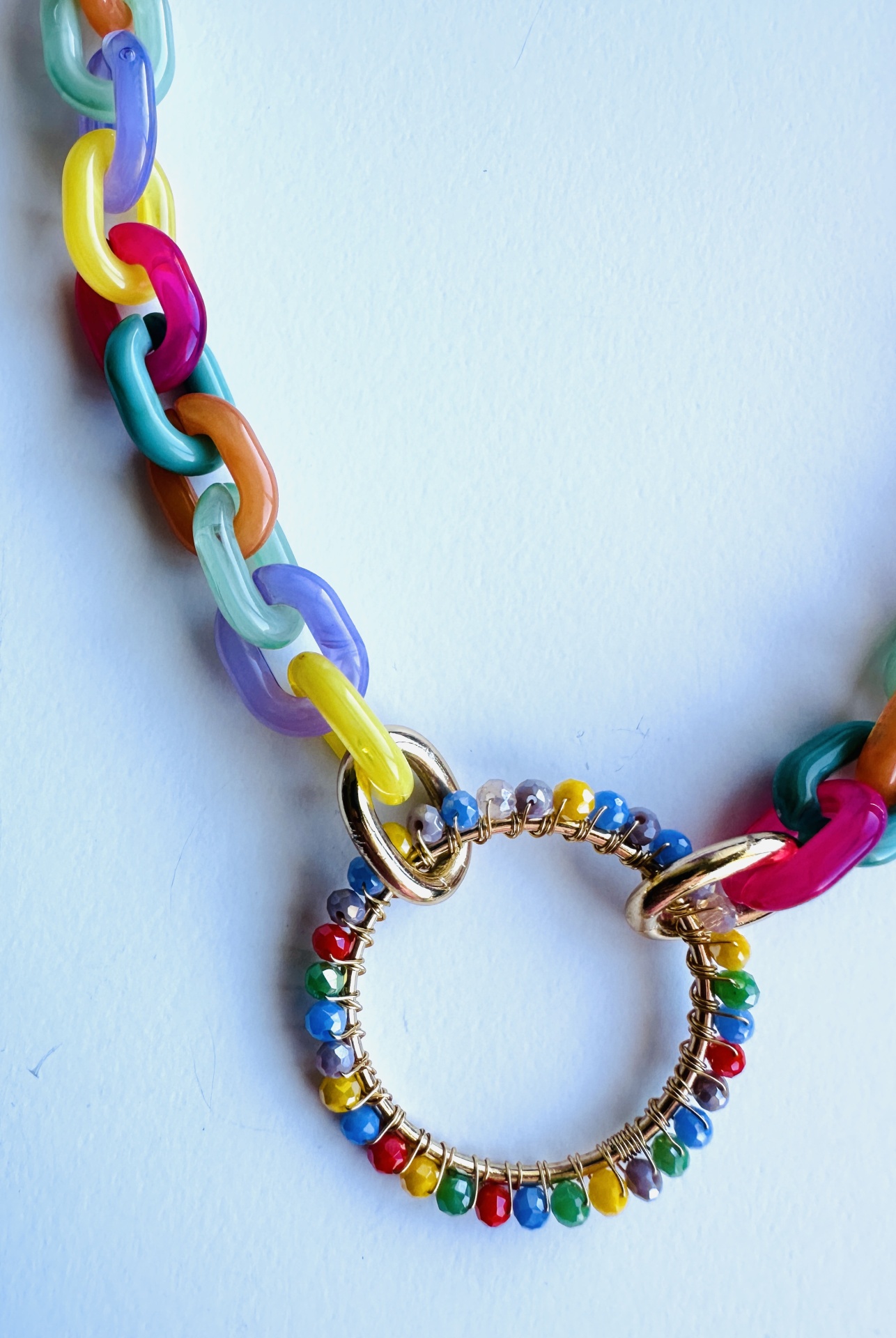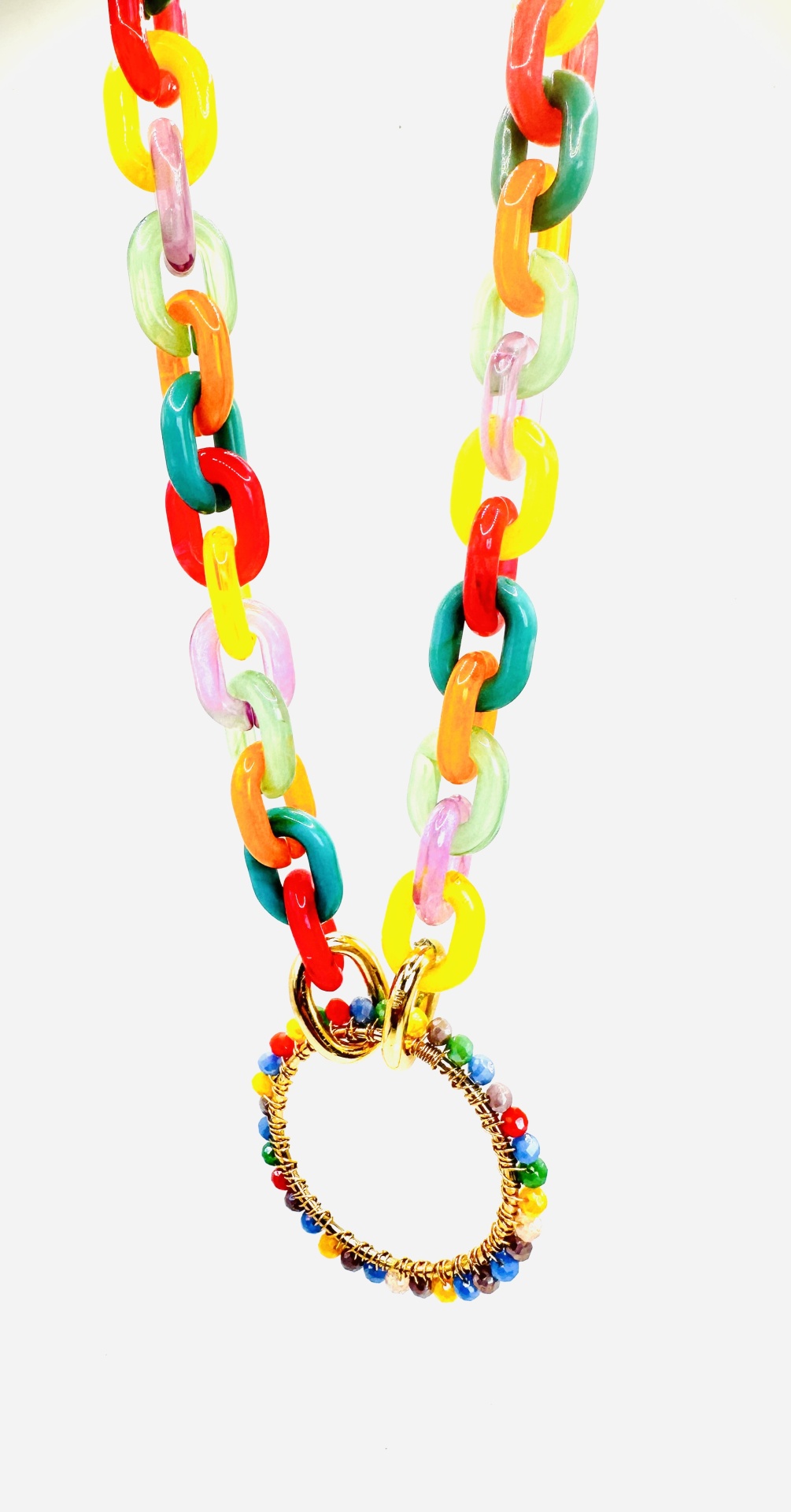 Colar com Elos Coloridos em Resina