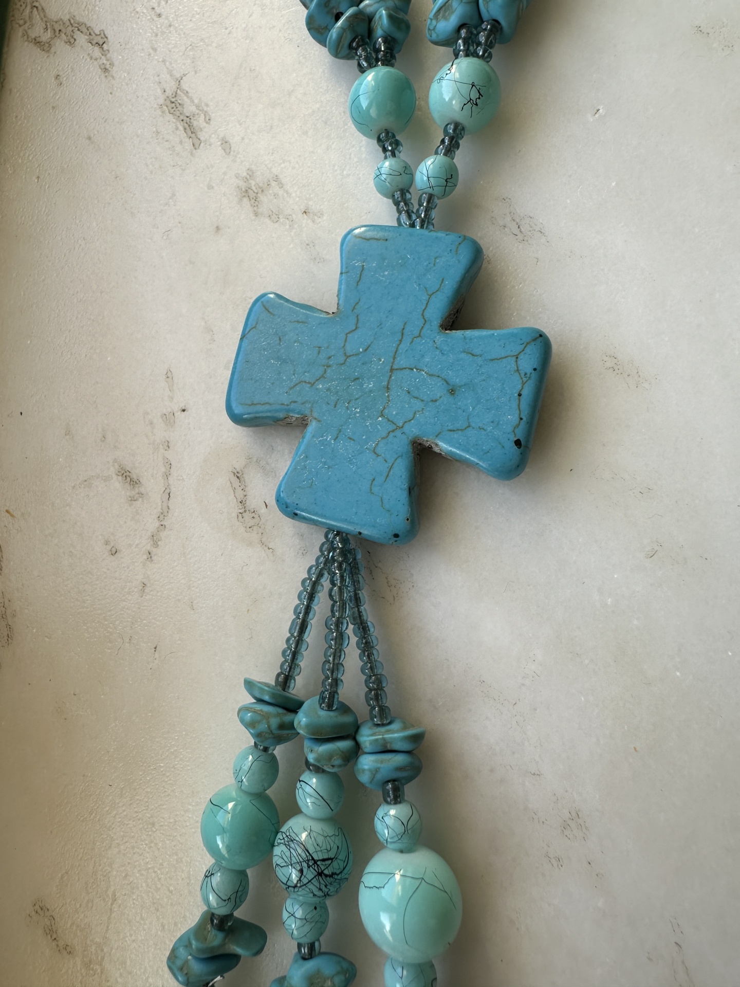 Colar com turquesas e cruz