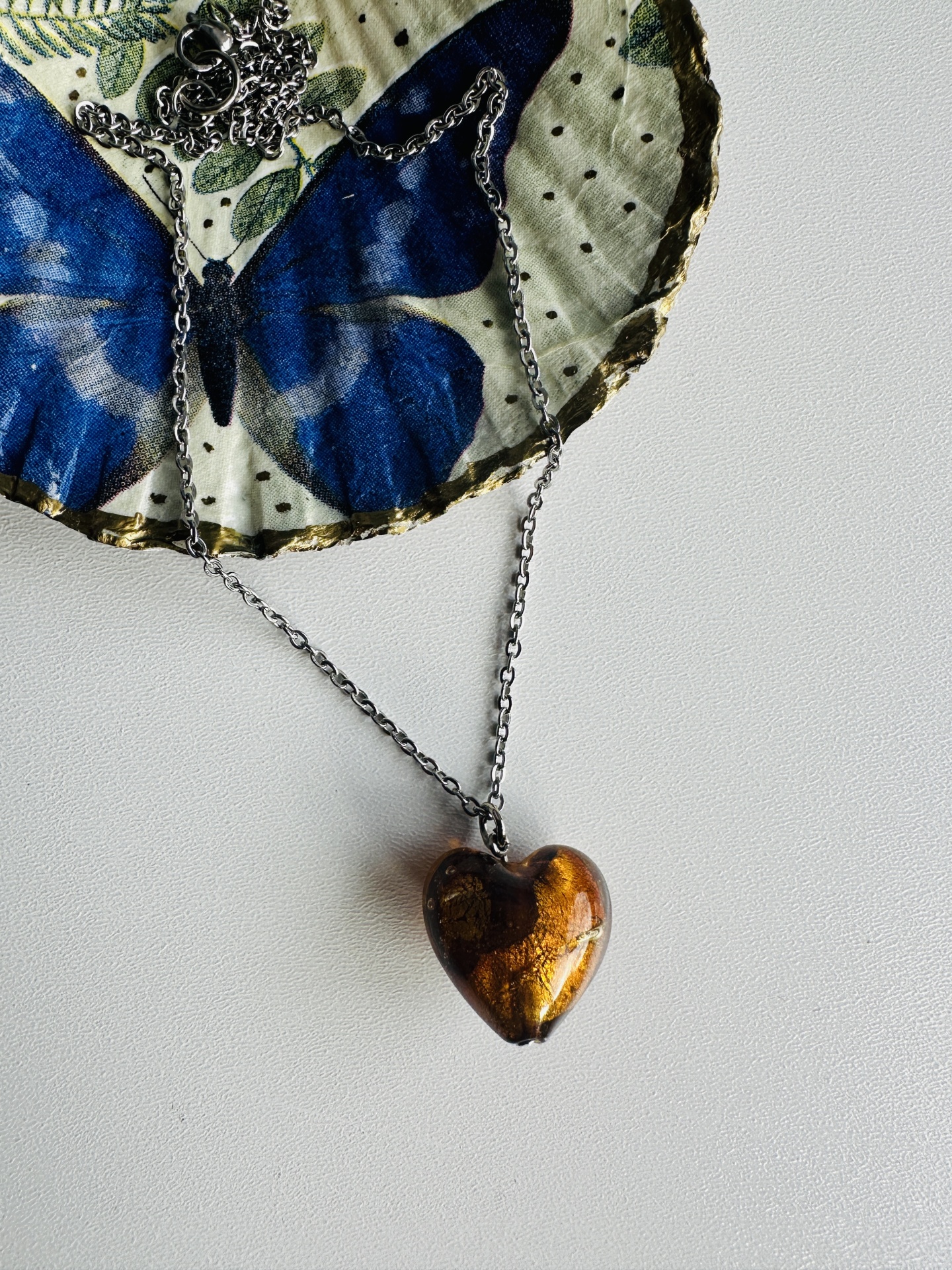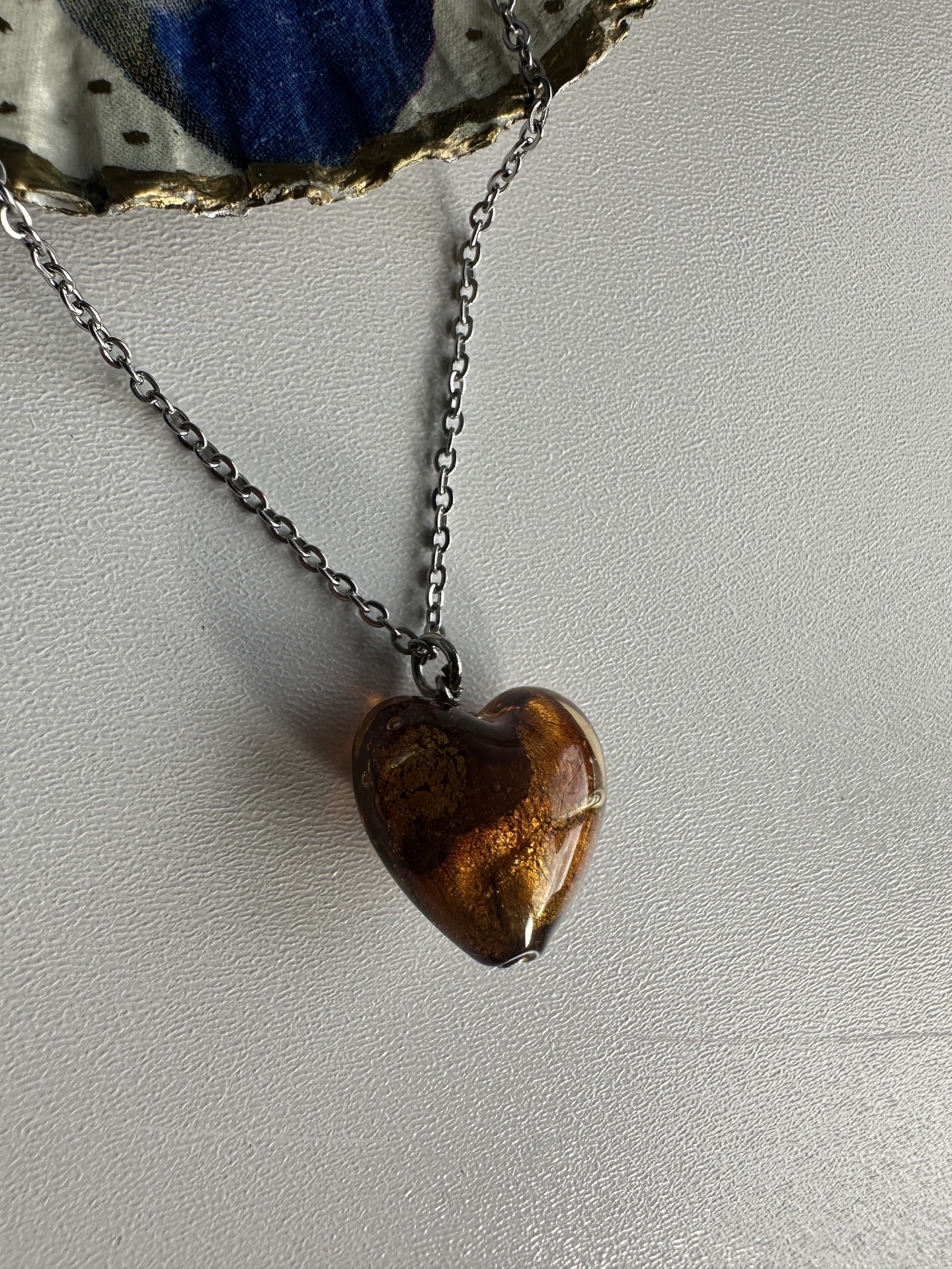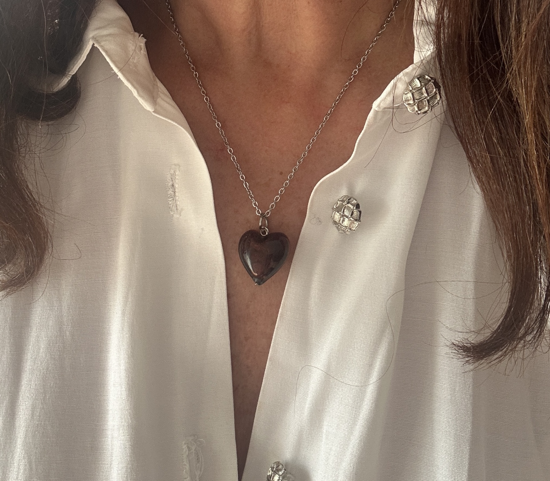 Colar em aço coração em vidro murano