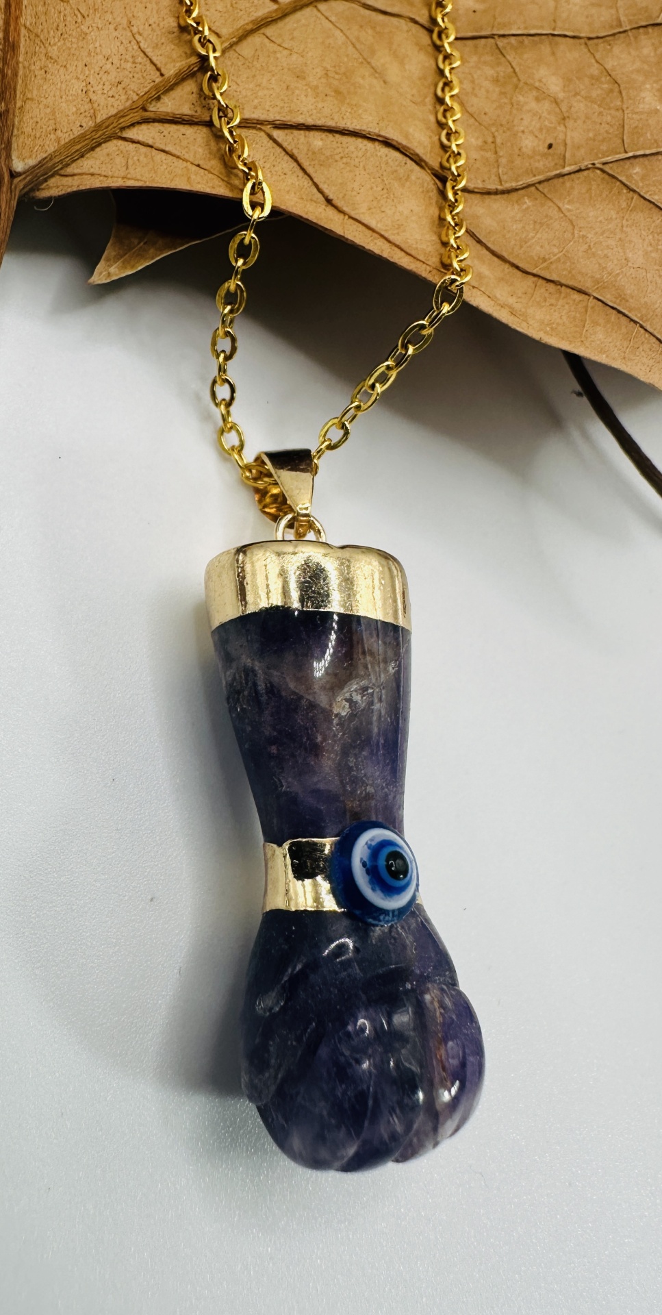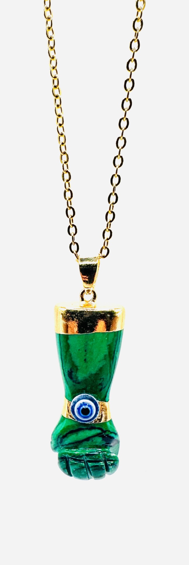 Transforme o seu visual e atraia boas energias com esta Figa incrível! Com uma corrente dourada delicada e um pingente único de figa em tons vibrantes adornado com o poderoso olho grego, esta peça é mais do que um acessório: é um símbolo de proteção, tipo e estilo excepcional.