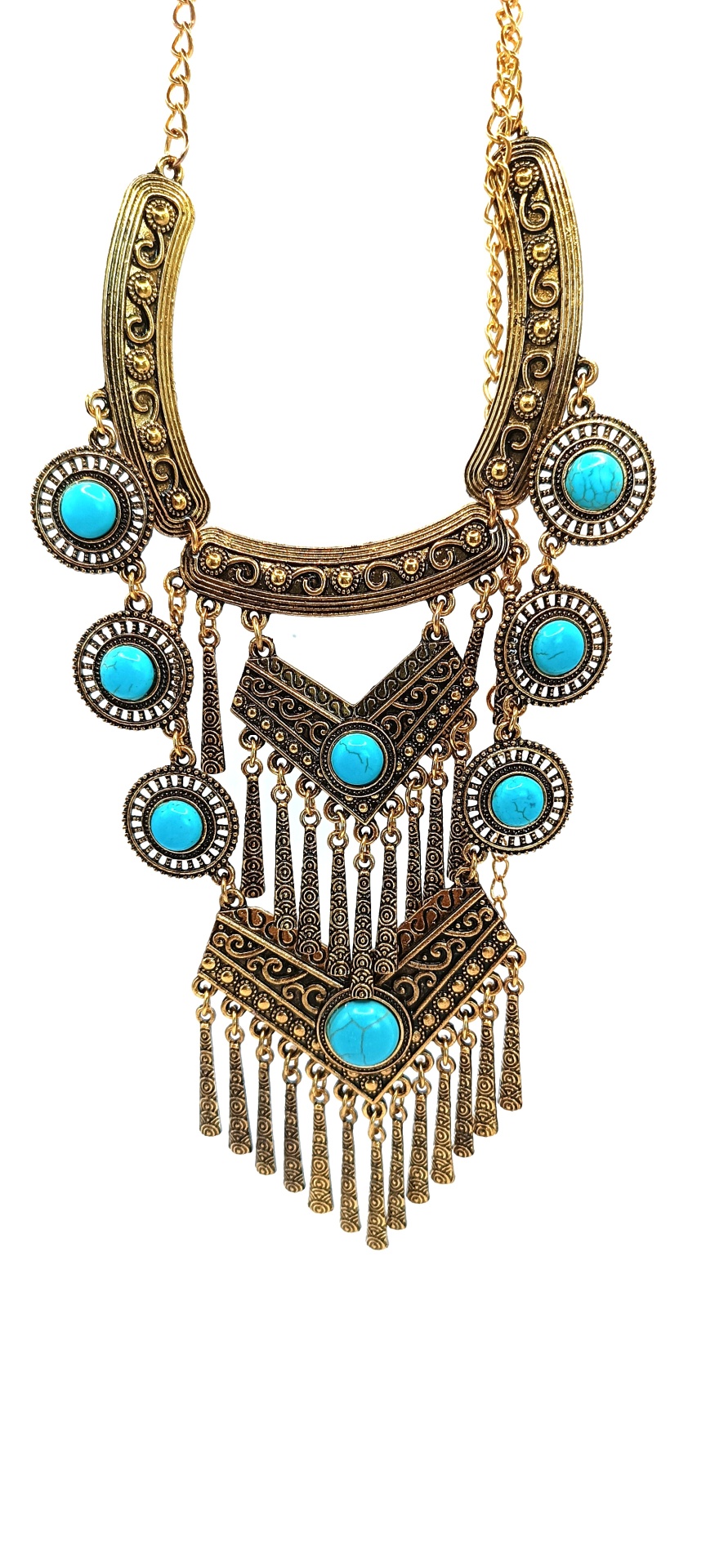 Colar dourado com turquesas
