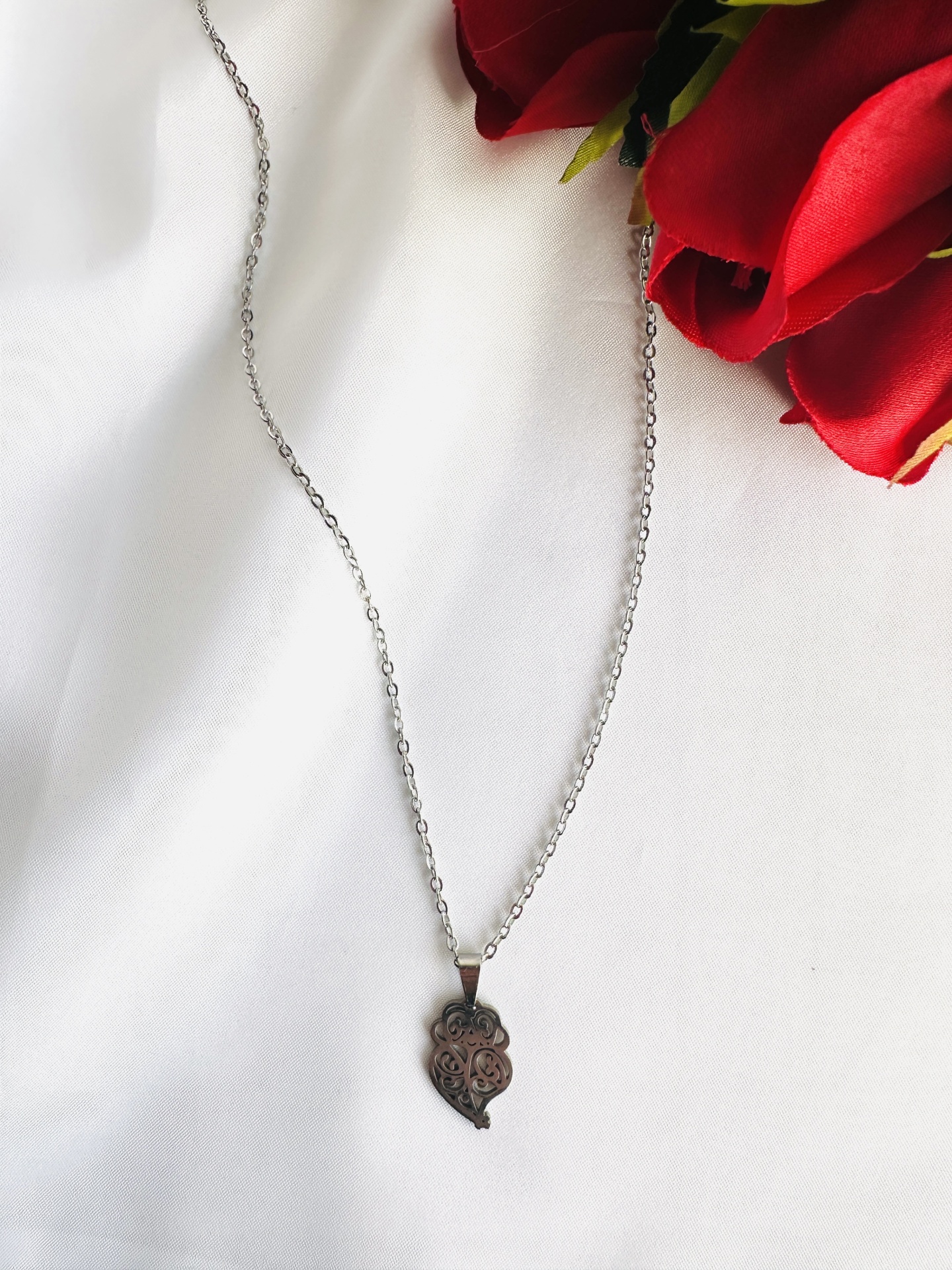 Colar em aço com coração de viana