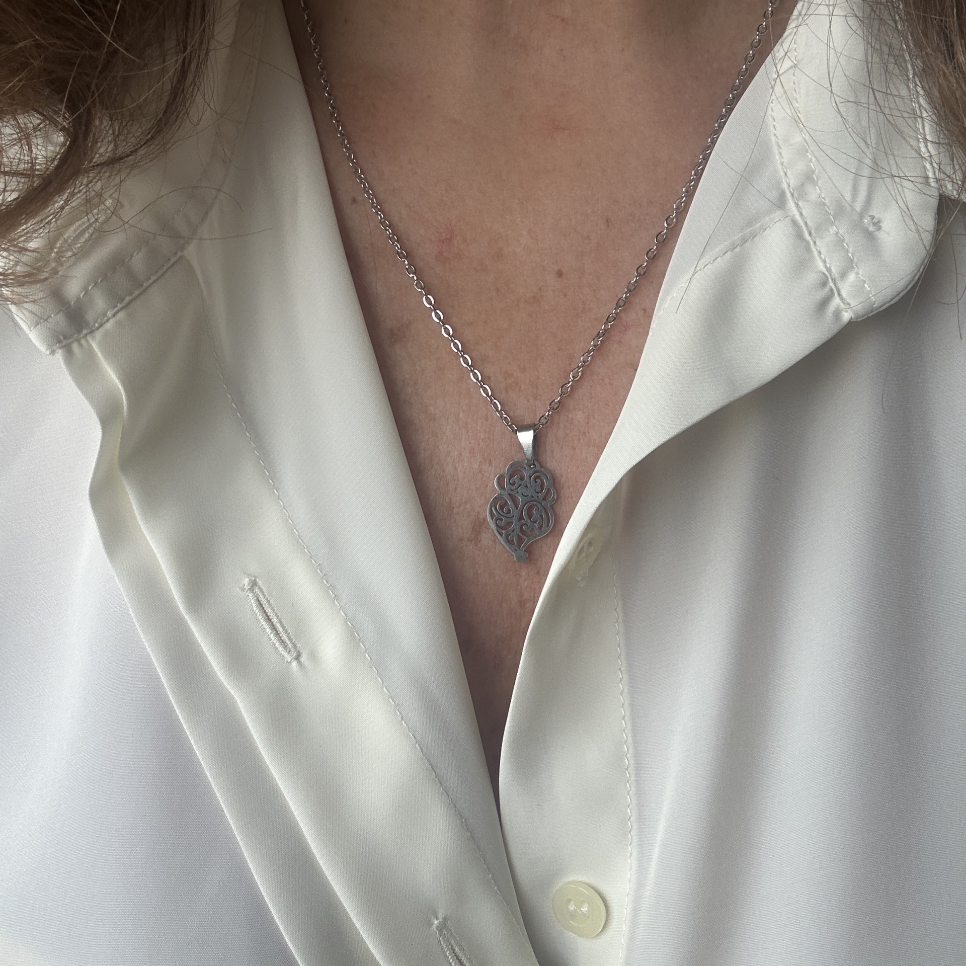 Afirme a sua singularidade com este delicado colar, uma peça em aço inoxidável que alia a resistência do metal à sofisticação da tradição portuguesa.
