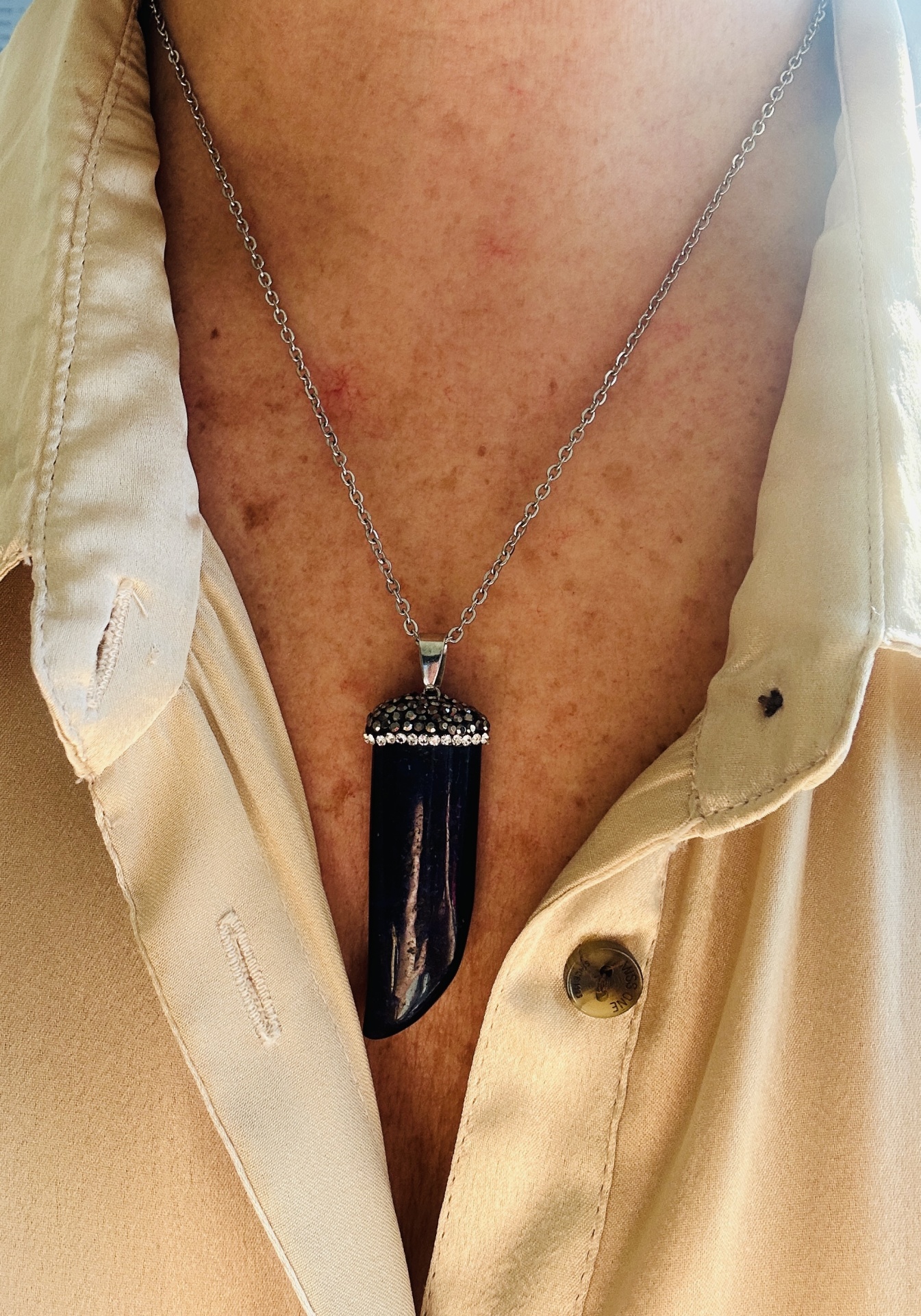 A pedra azul é reconhecida por promover equilíbrio emocional, mental e boas energias. Este pingente é uma peça ideal para quem deseja usar um amuleto de calma e proteção.