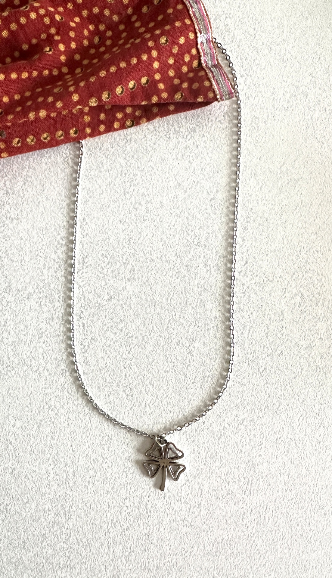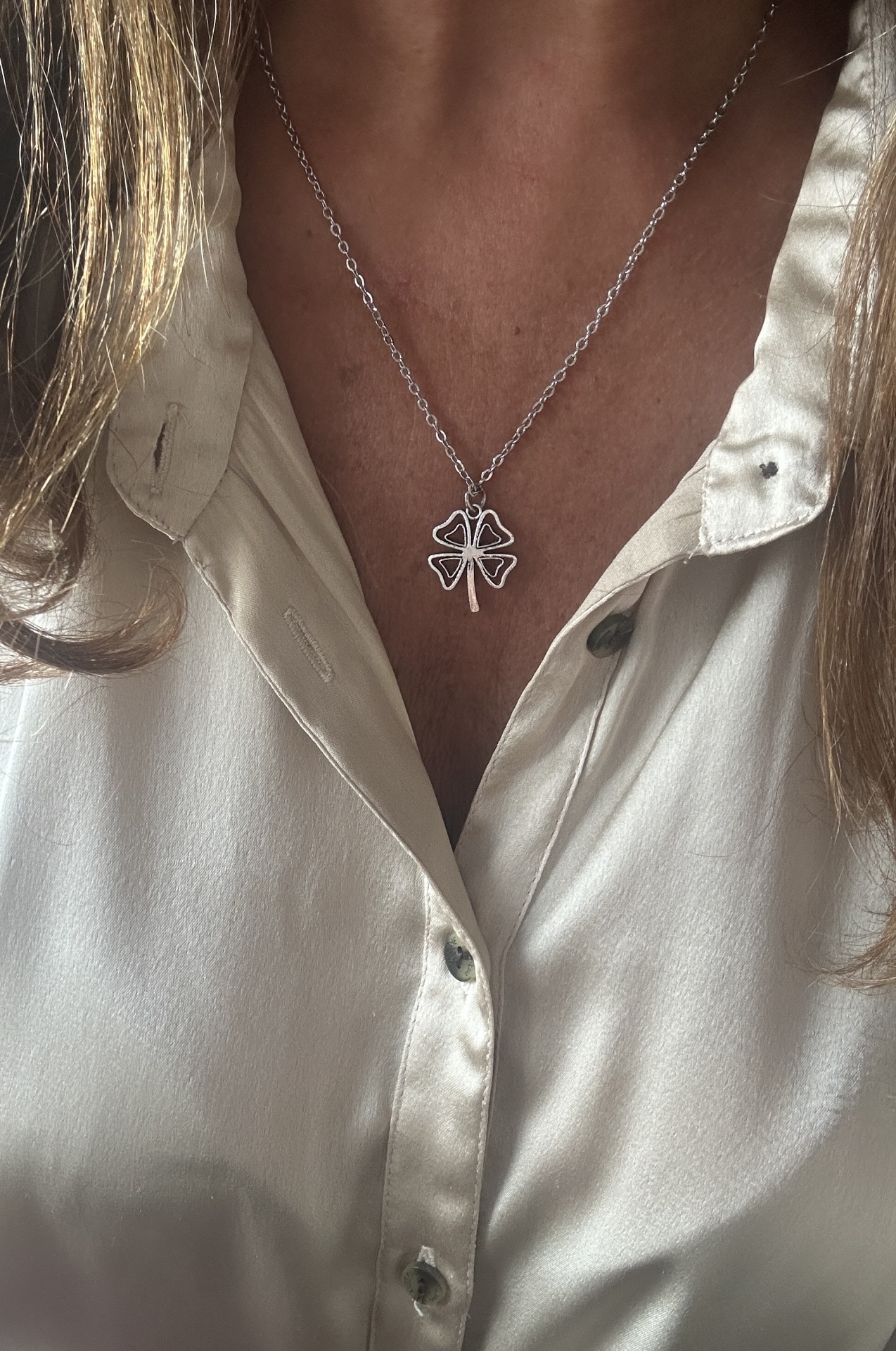 Adicione um toque de charme natural e sorte ao seu visual com este encantador colar em aço com 42 cm e um extensor de 4 cm, destacado por um trevo de 2 cm. Uma peça única que combina estilo e simbolismo num design artesanal.