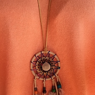 Peça Central: Use o colar como peça central do seu visual, opte por roupas de cores sólidas para permitir que o detalhe do caçador de sonhos se destaque.