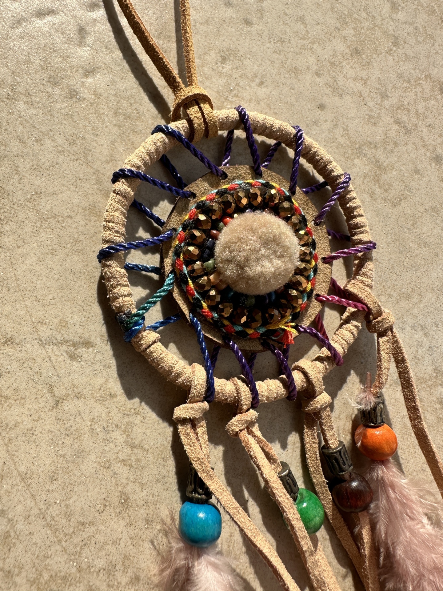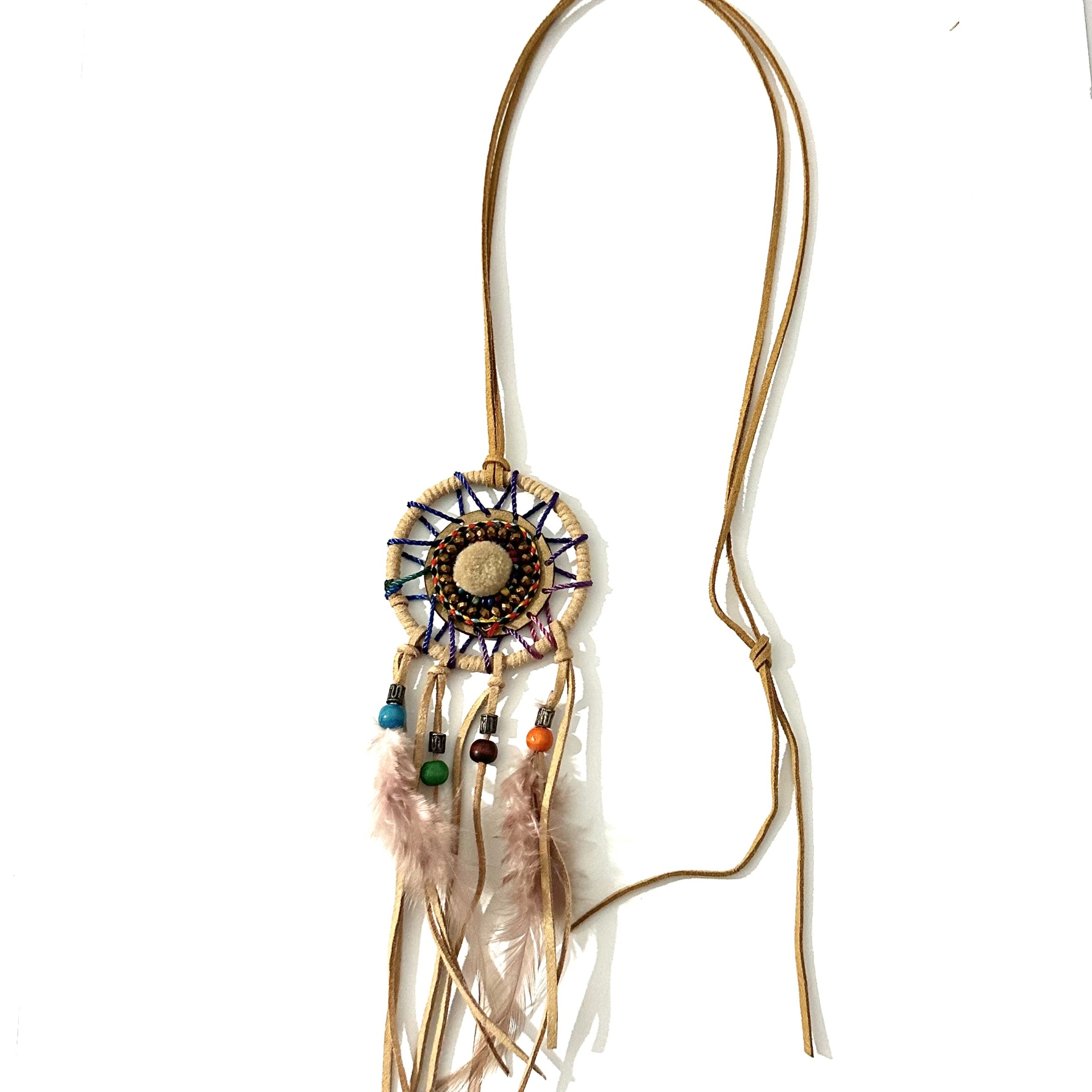 Adquira o seu colar em cabedal castanho com caçador de sonhos e adicione uma peça de beleza e significado à sua coleção de acessórios. Compre agora e aproveite o encanto e a proteção que este colar único proporciona!