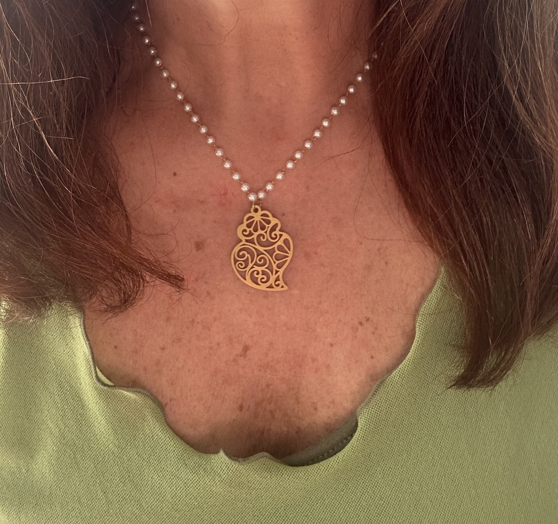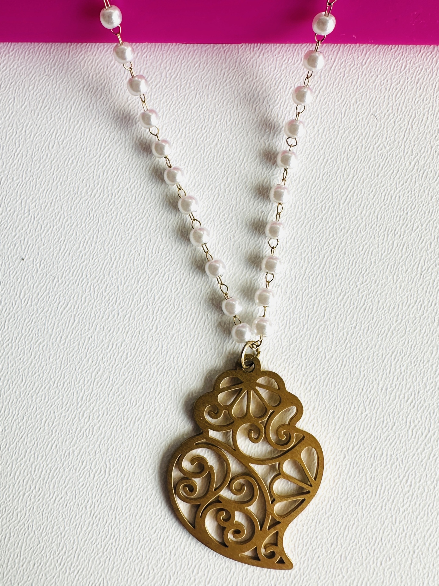 Material: Pendente em aço dourado e fio de pérolas sintéticas.