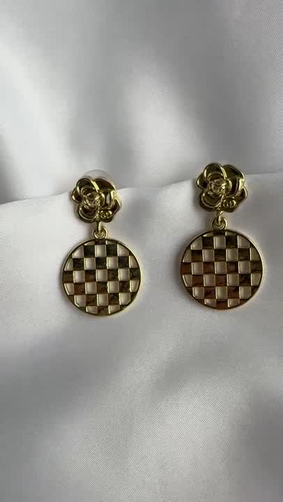 Brincos Dourados Flor e Xadrez | Elegância Radiante e Toque Moderno