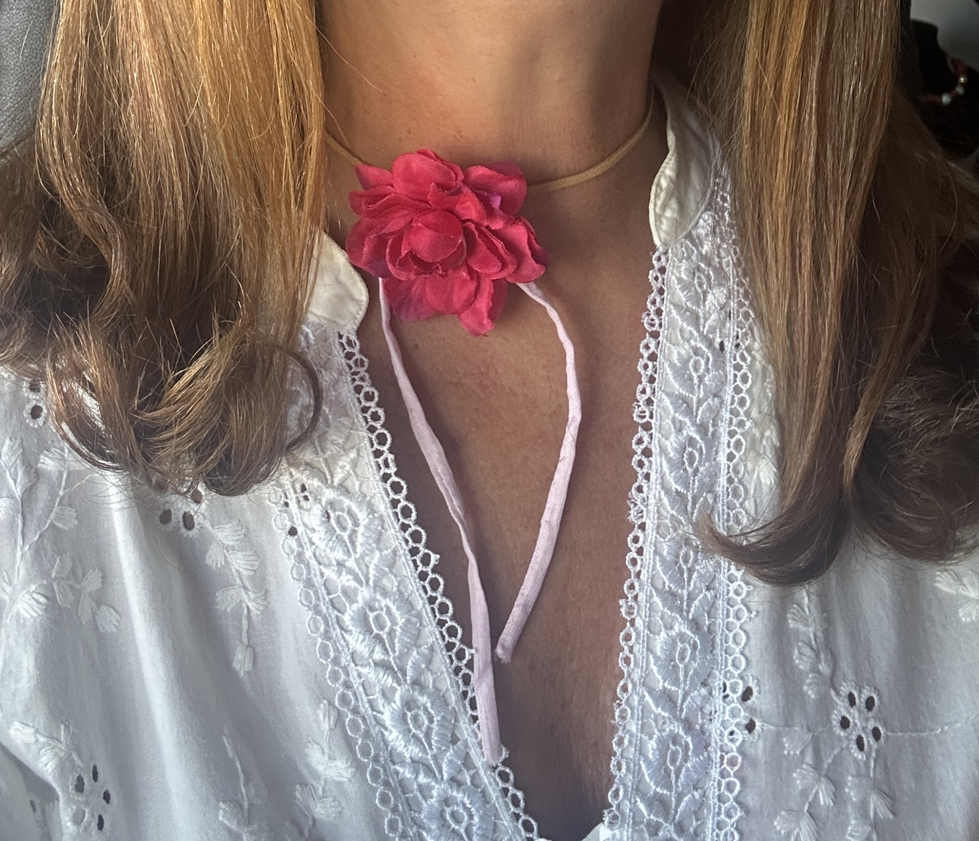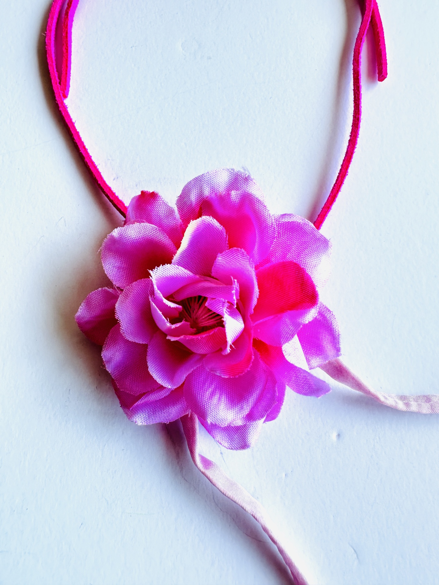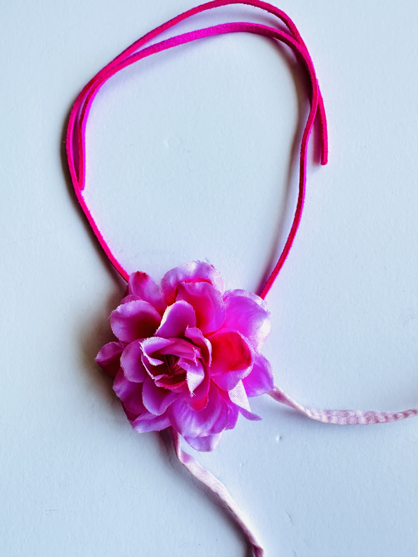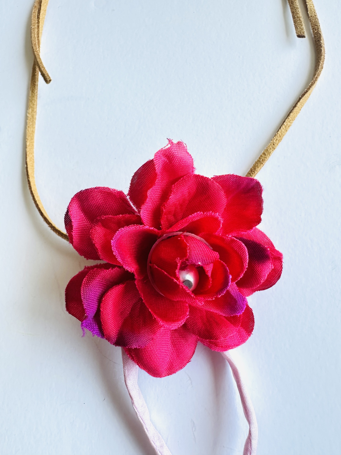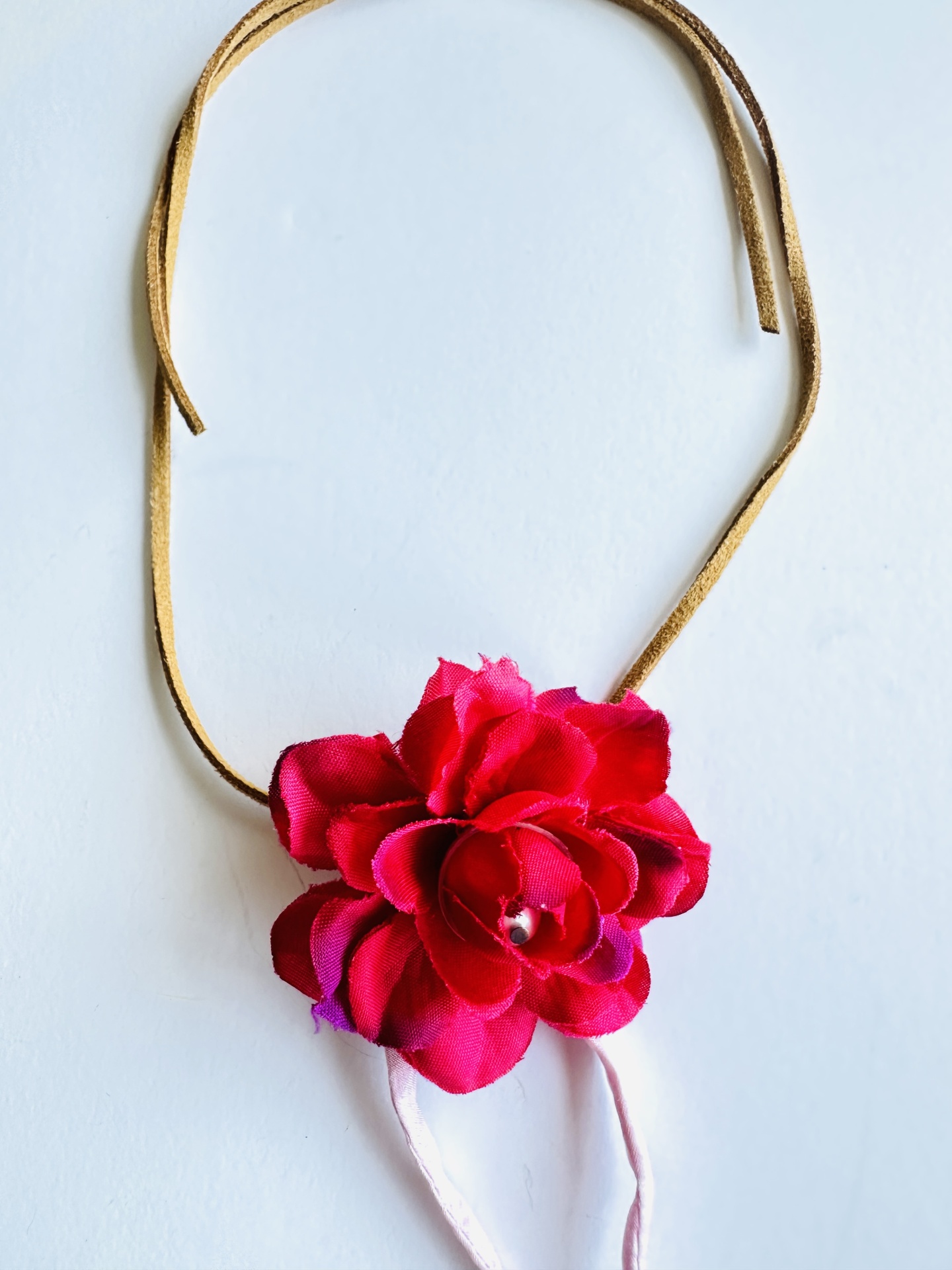 Colar fio cabedal com flor em tecido