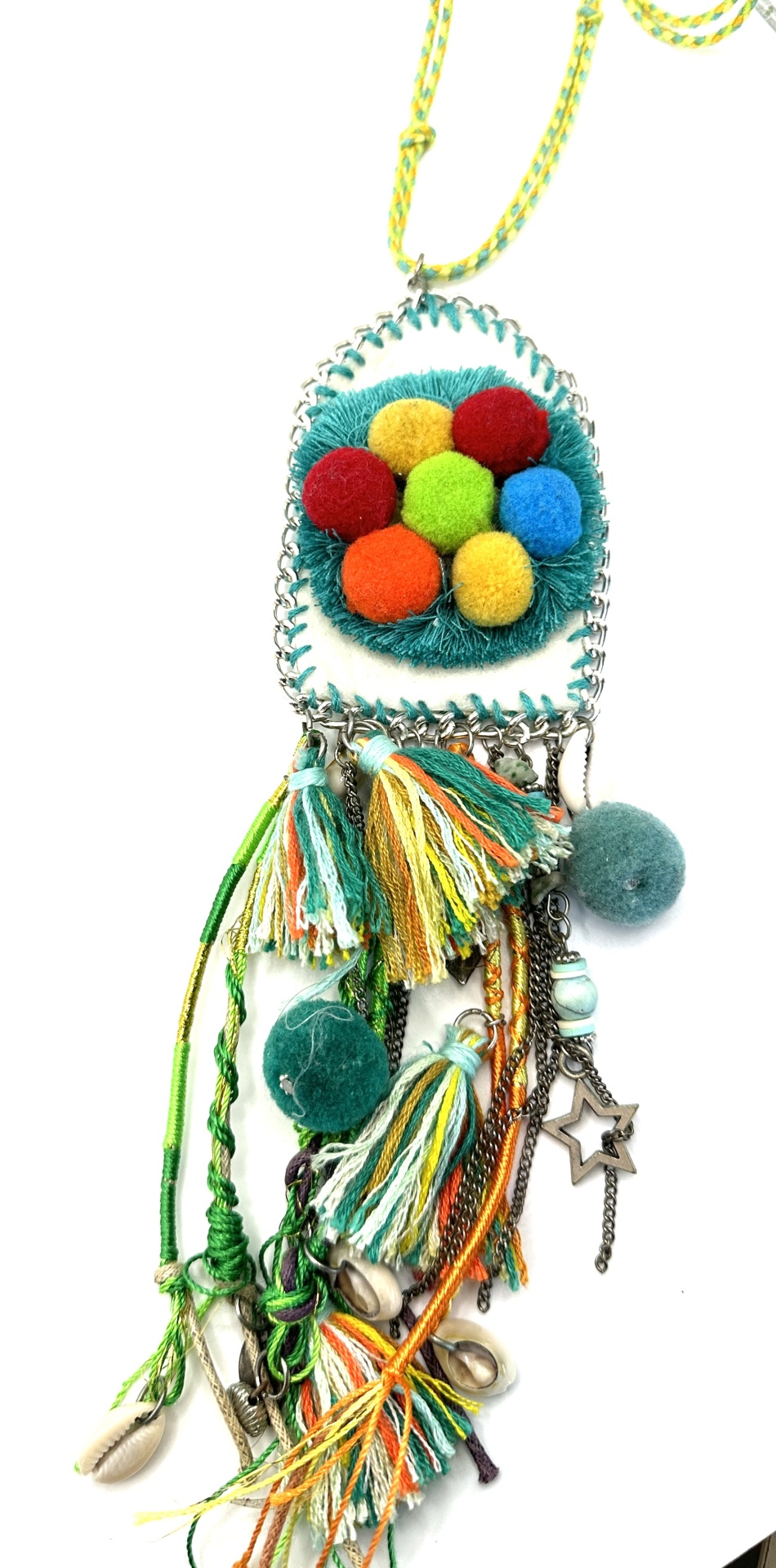 Colar hippie com pompons e búzios