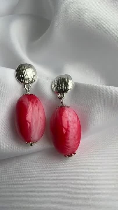 Materiais Selecionados e Cores que Eletrizam: Estes brincos exclusivos são uma fusão perfeita de brilho metálico e cor intensa. Na parte superior, um botão prateado texturizado, com ranhuras que captam a luz de forma sublime, oferece um toque moderno e sofisticado. Deste pende uma conta de resina ovalada, num vibrante tom de vermelho vivo e translúcido, que evoca a energia da paixão e a alegria de viver. O brilho do prateado contrasta harmoniosamente com a intensidade do vermelho, criando um impacto visual imediato e marcante. Não contém pedras naturais nesta peça, mas o seu design e a vivacidade das cores compensam em personalidade e charme.