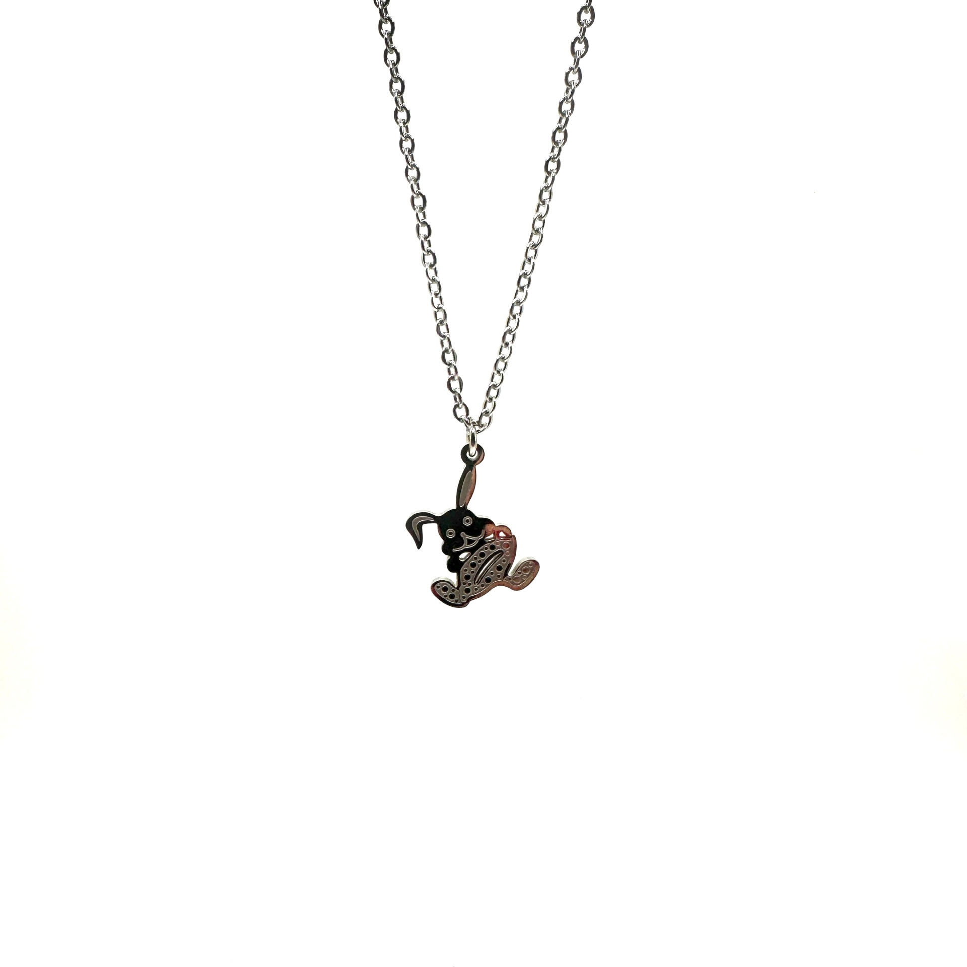 Detalhes, Material e Cor: Este elemento de distinção é fabricado em aço inoxidável de tom prateado, garantindo uma peça duradoura que não escurece e mantém o seu brilho original. O pendente apresenta um coelho em pose dinâmica, com detalhes vazados e padrões artísticos no corpo que lhe conferem uma textura única e sofisticada.