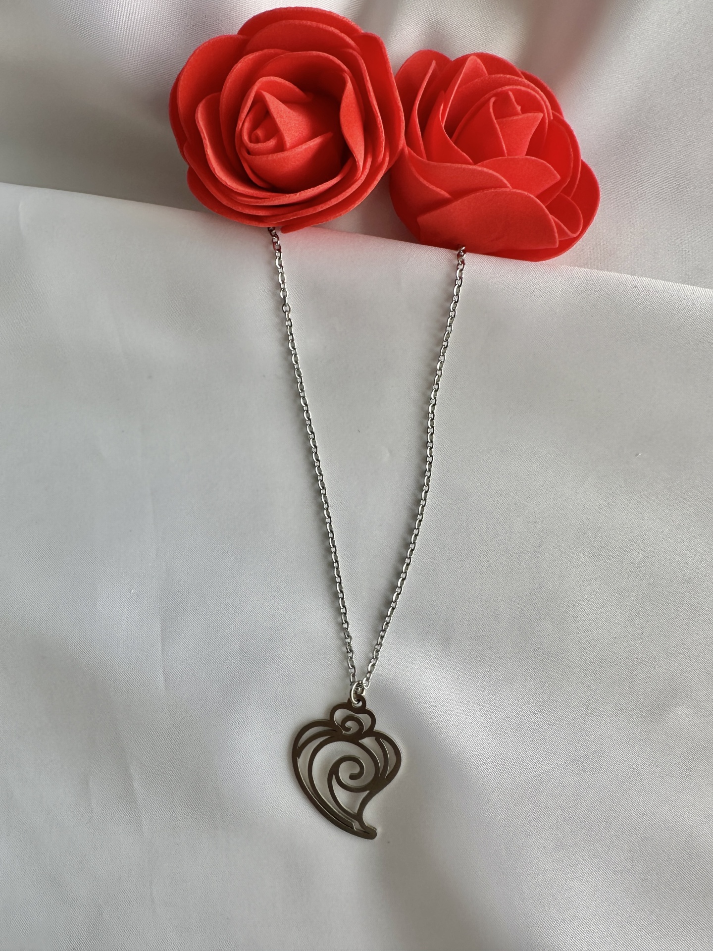 Encante-se com o Fio coração, uma peça deslumbrante que une sofisticação e delicadeza. Feito em aço inoxidável de alta qualidade, este colar oferece resistência, durabilidade e um brilho impecável, sendo perfeito para uso diário ou para ocasiões especiais. O seu pingente, em formato de coração com arabescos vazados, tem um toque romântico e artístico, ideal para quem valoriza acessórios cheios de personalidade.
