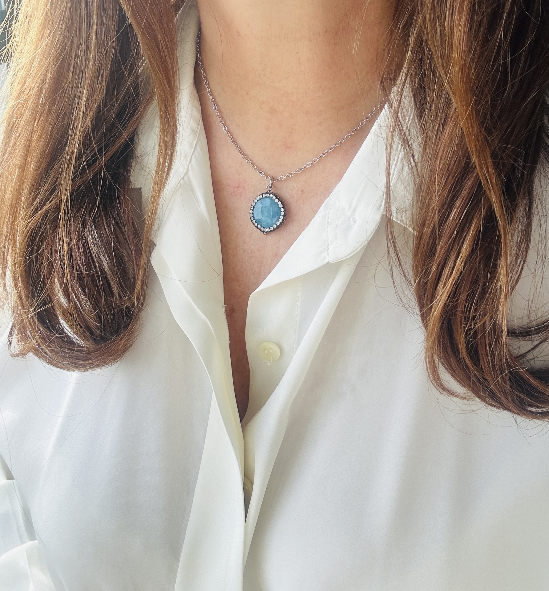 Estilo Formal: Use com um vestido elegante ou uma blusa sofisticada para um visual refinado. O pingente de turquesa azul acrescenta um elemento de sofisticação e emoção.