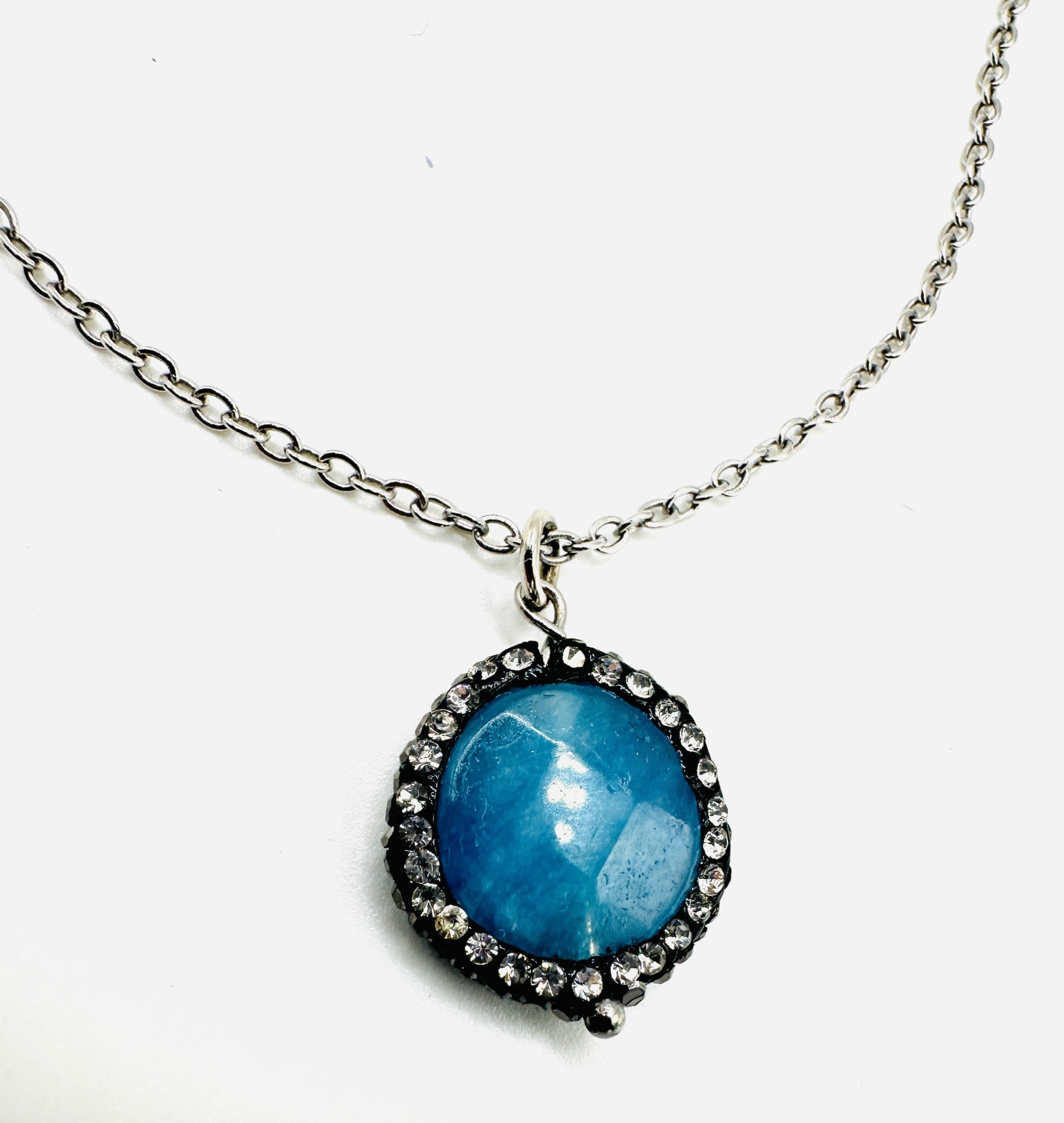 Pingente de Turquesa:O pingente de turquesa rodeado de strass transmite a elegância que precisa.