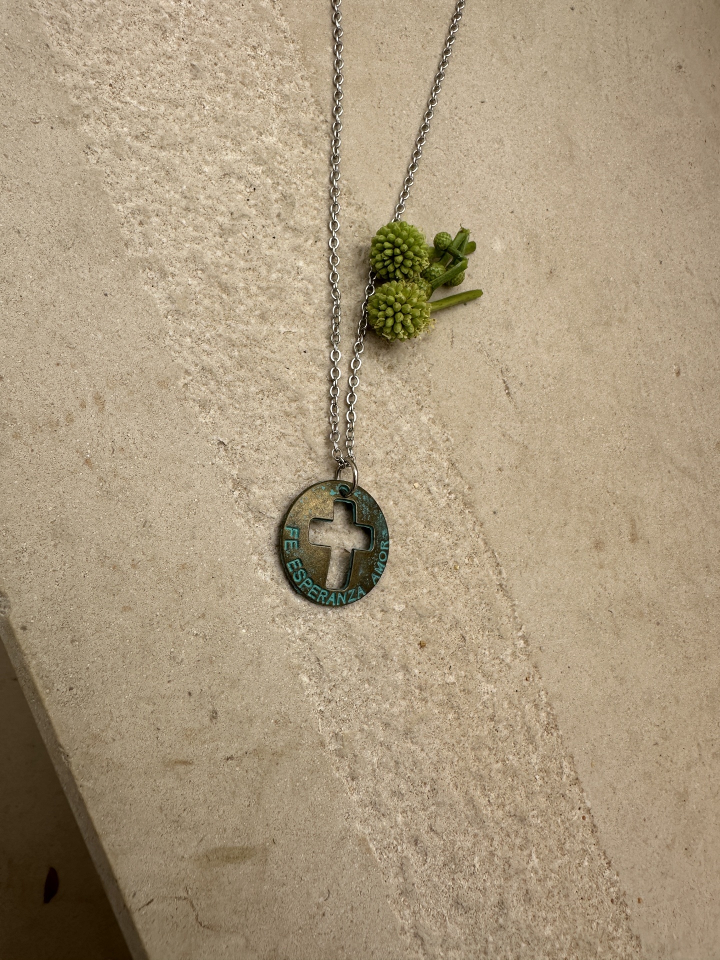 Fio em aço com cruz fé esperança e amor