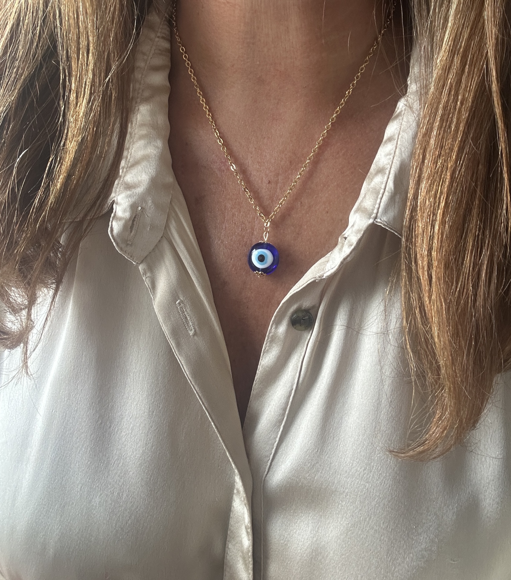 Como o olho deste amuleto é produzido em autêntico vidro de Murano, cada exemplar é moldado de forma artesanal, o que torna cada peça absolutamente irrepetível; por esse motivo, não existem dois iguais e não é possível garantir que o modelo que vai receber seja idêntico ao da fotografia.