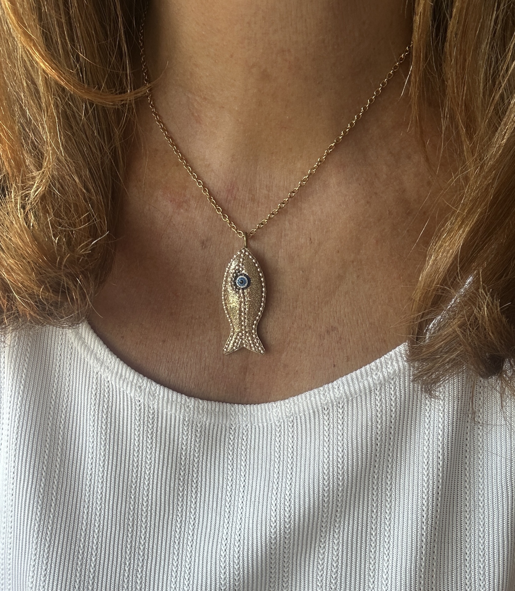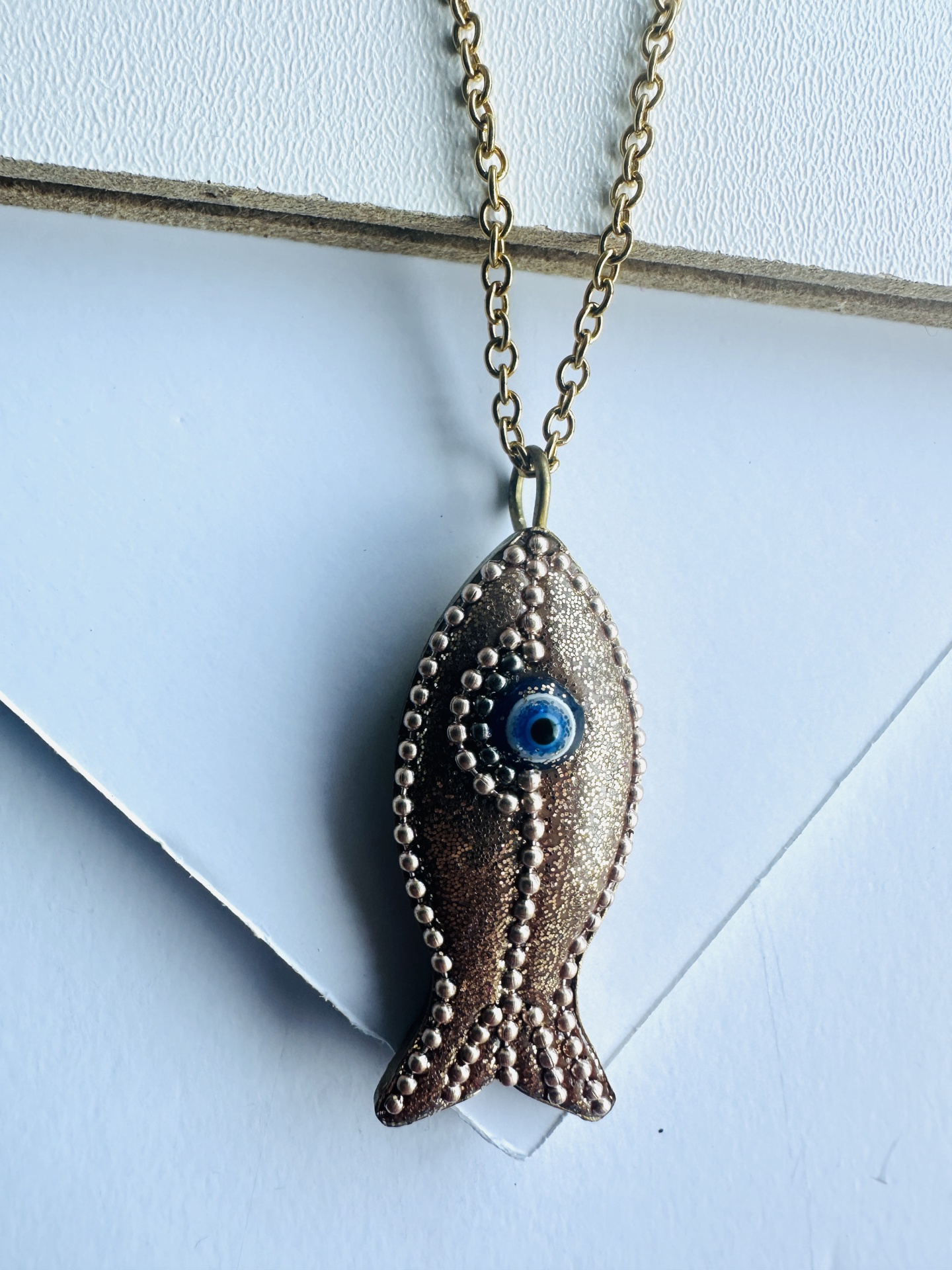 Fio em aço com peixe dourado com olho grego