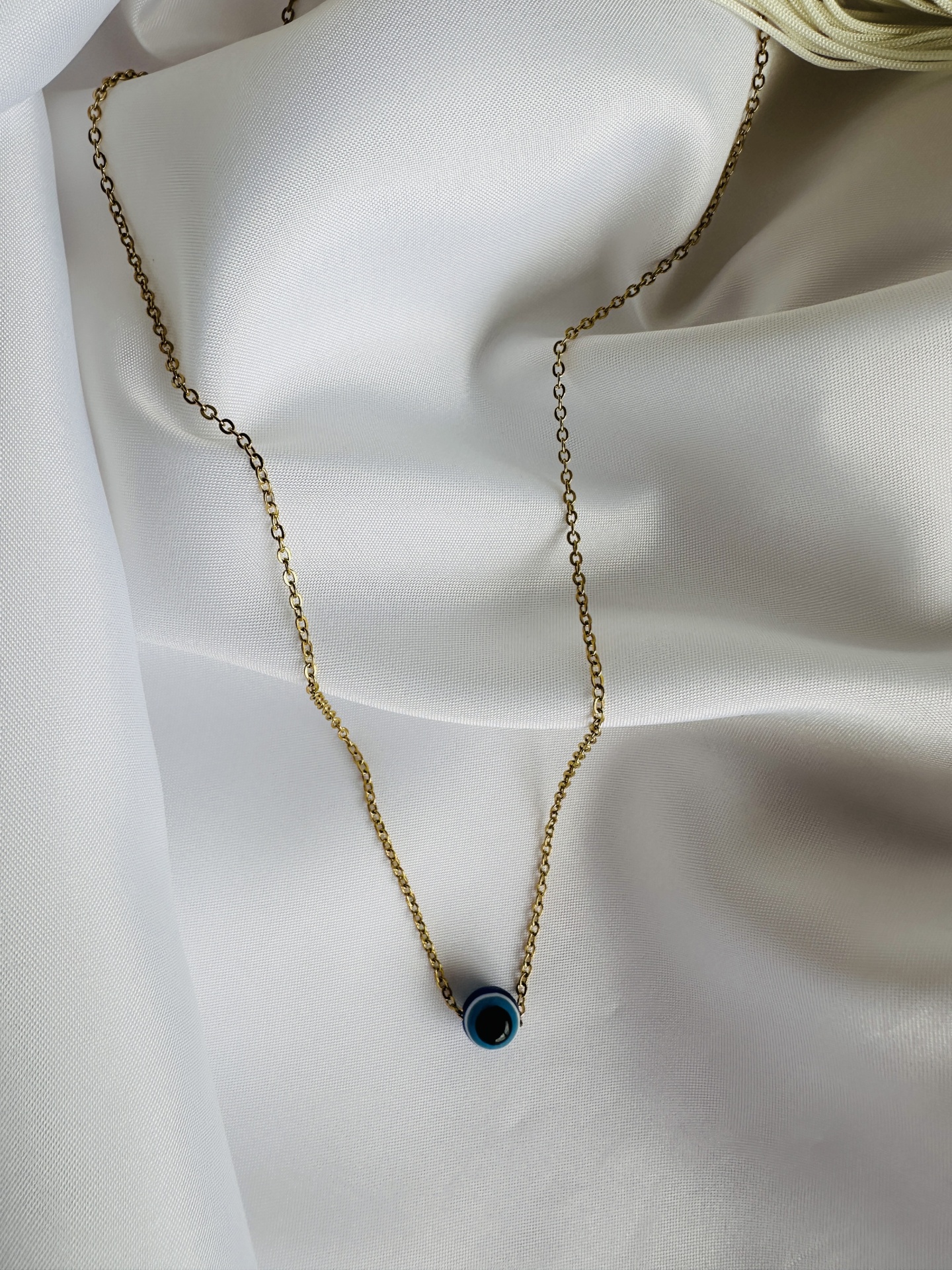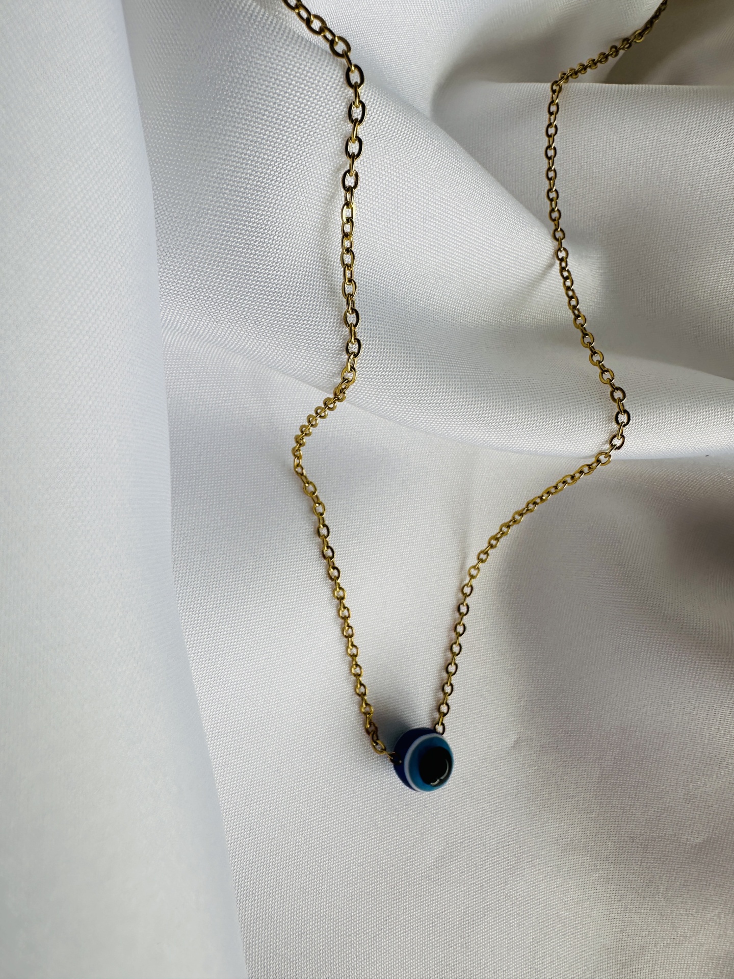Olho Grego Azul: O olho grego é um símbolo tradicional de proteção contra o mau-olhado e energias negativas. O tom azul representa calma e serenidade, o que torna este colar não apenas uma peça de moda, mas também um talismã de proteção.
