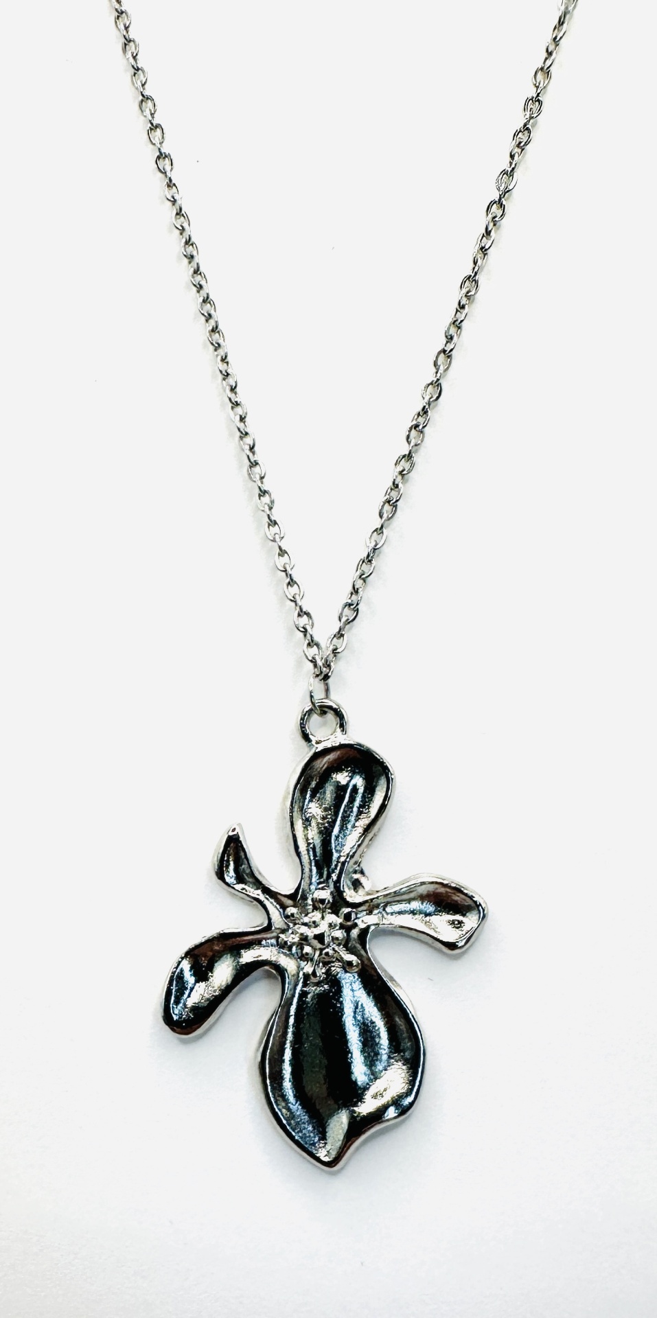 Este fio prateado em formato de flor é perfeito para quem deseja um acessório único e estiloso. Com detalhes delicados e um design floral moderno, transmite um toque artístico ao visual. O seu pingente floral tem um acabamento brilhante que chama a atenção sem ser excessivo.