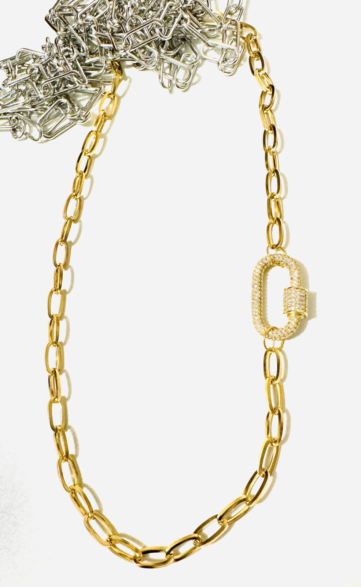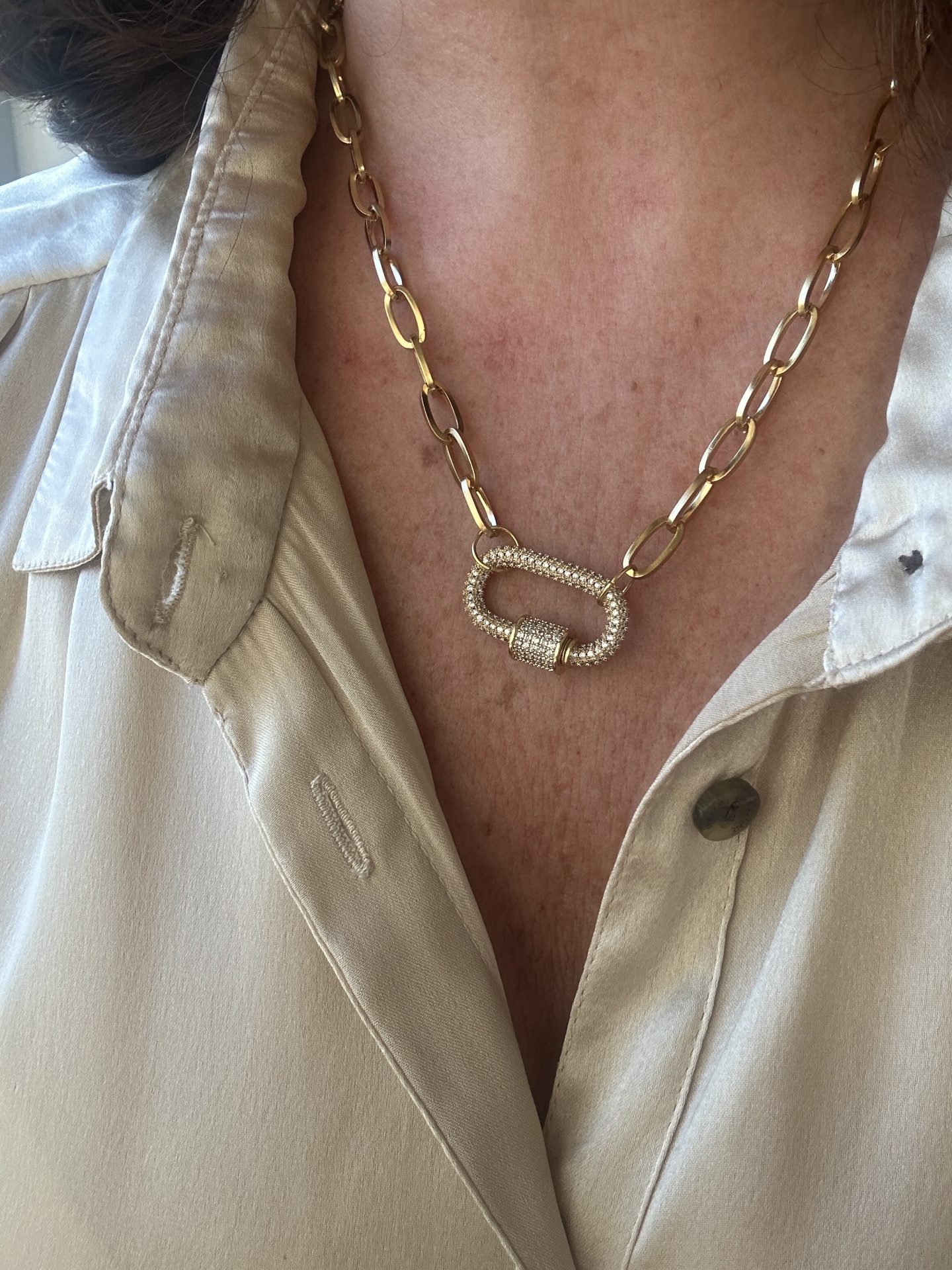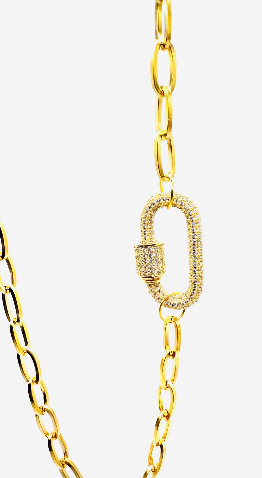 Eleve o nível do seu estilo com este colar de corrente dourada com fecho cravejado de cristais. Uma peça versátil e elegante, perfeita para ocasiões especiais ou para trazer sofisticação ao seu dia a dia.