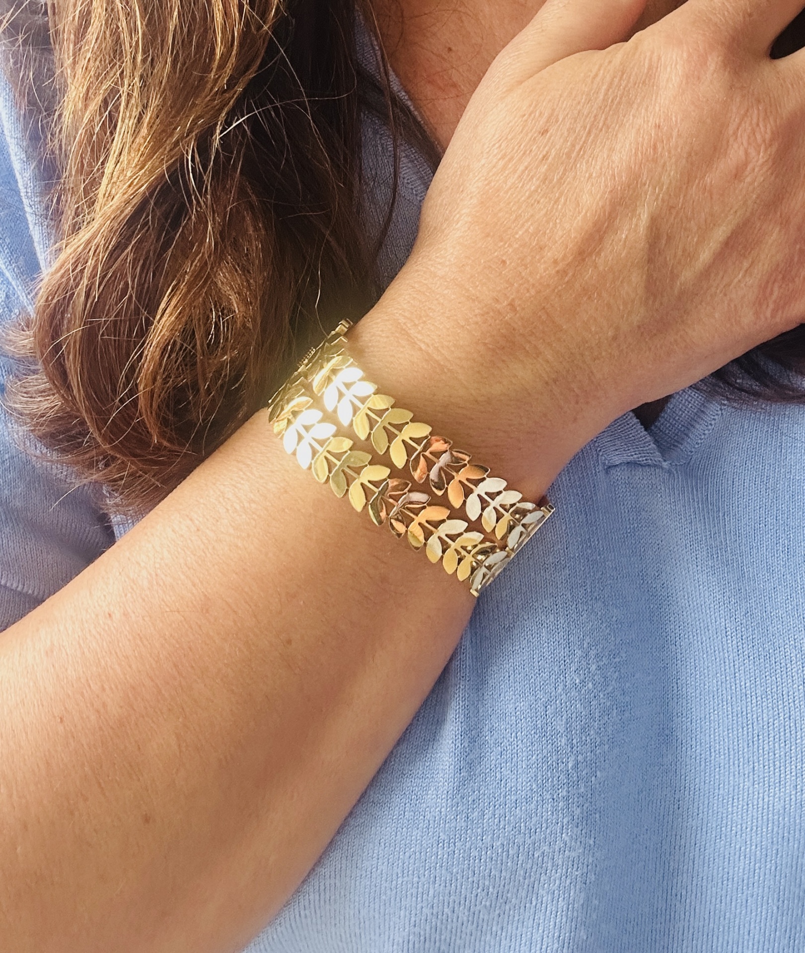 Pulseira folhas douradas em aço
