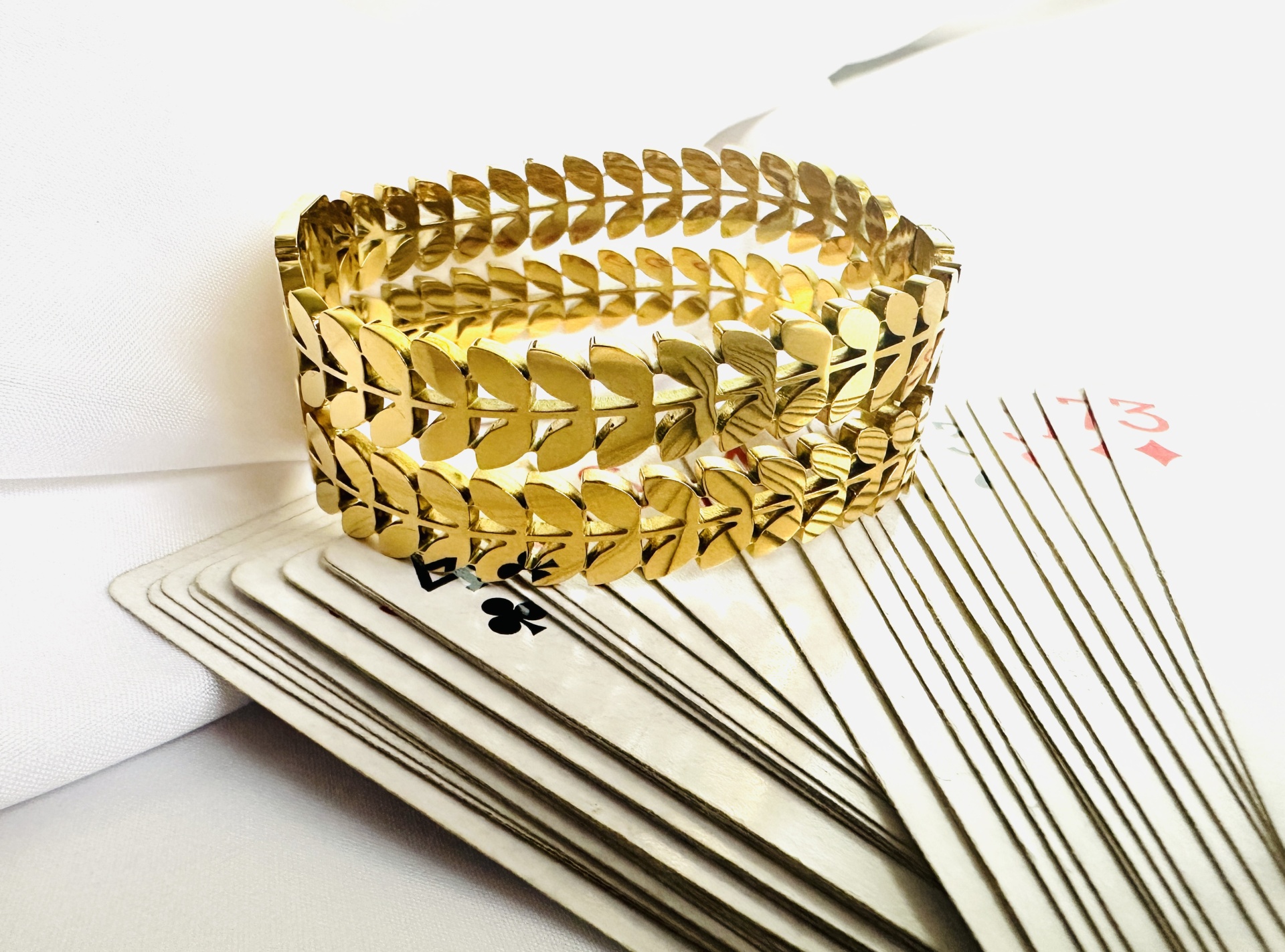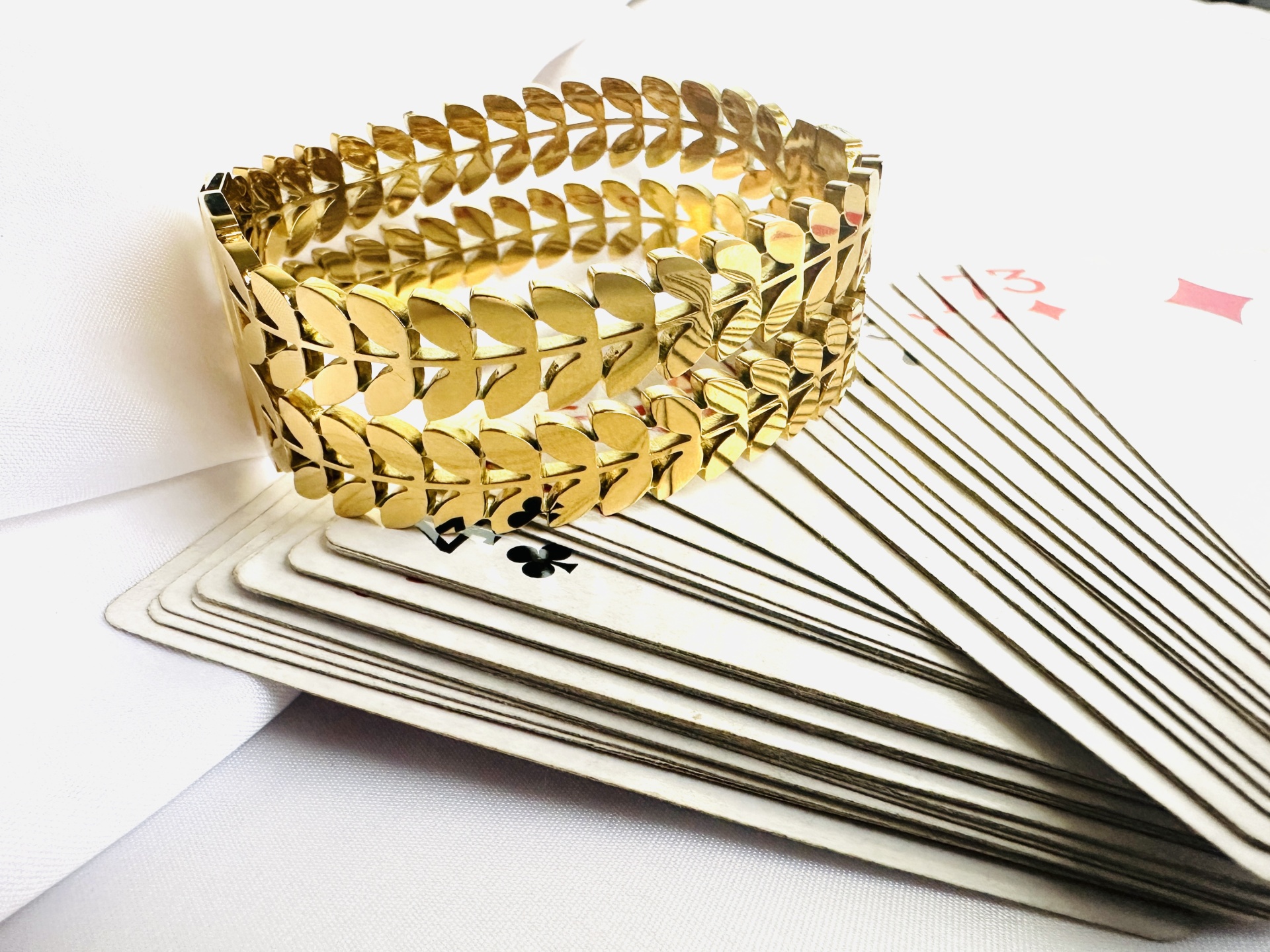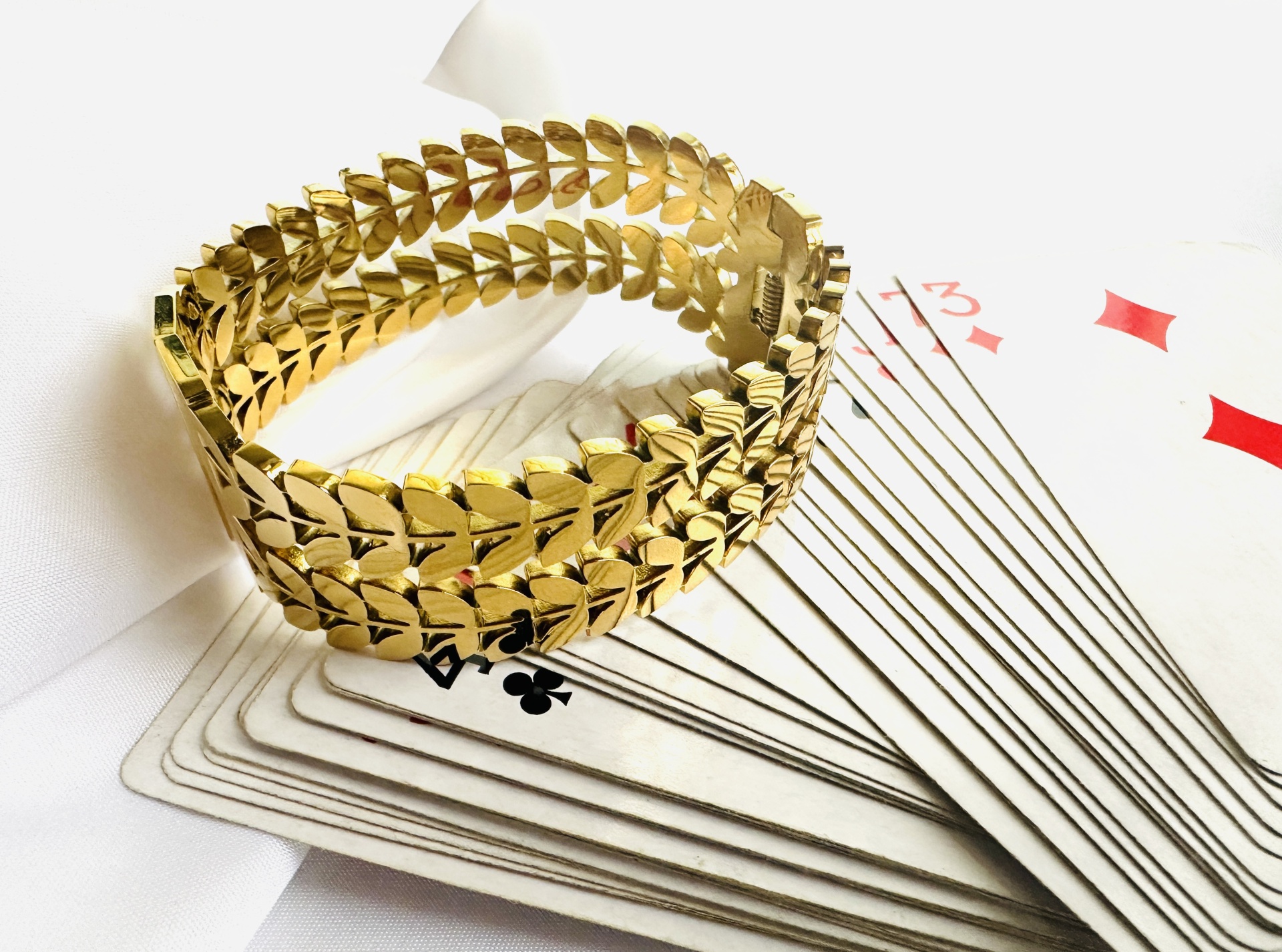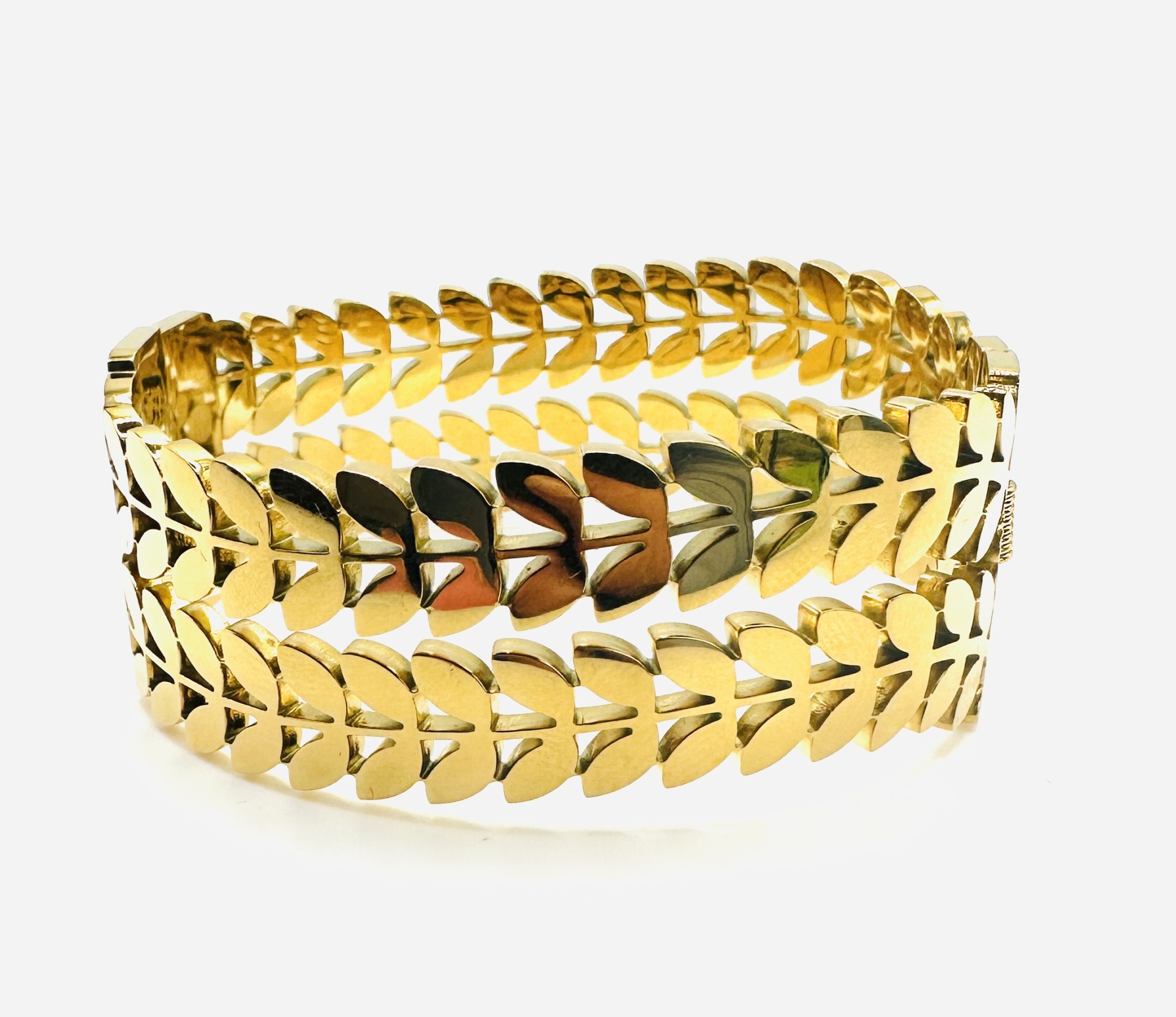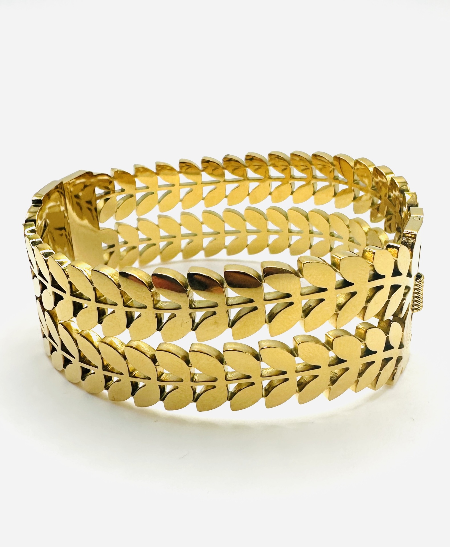Transforme o seu visual com esta deslumbrante pulseira de design moderno, inspirada em folhas douradas. Com acabamento polido e detalhes que refletem a luz de maneira encantadora, esta peça é perfeita para mulheres que procuram estilo e sofisticação. Ideal para complementar visuais elegantes, desde o casual chic ao formal.